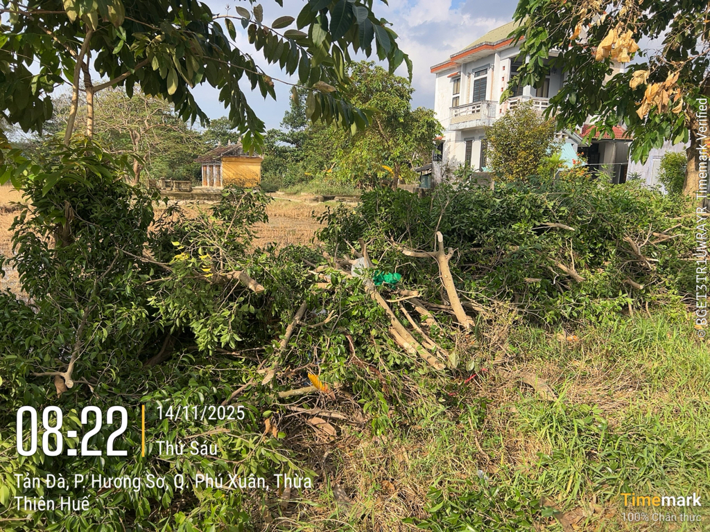 Tình trạng tập kết cây cành gây mất vệ sinh và mỹ quan thành phố, Đề nghị UBND phường xử phạt theo quy định, vị trí đối diện nhà số 78 Tản Đà, phường Hương An, thành phố Huế. Ảnh chụp lúc 8h22p ngày 14/11/2025.