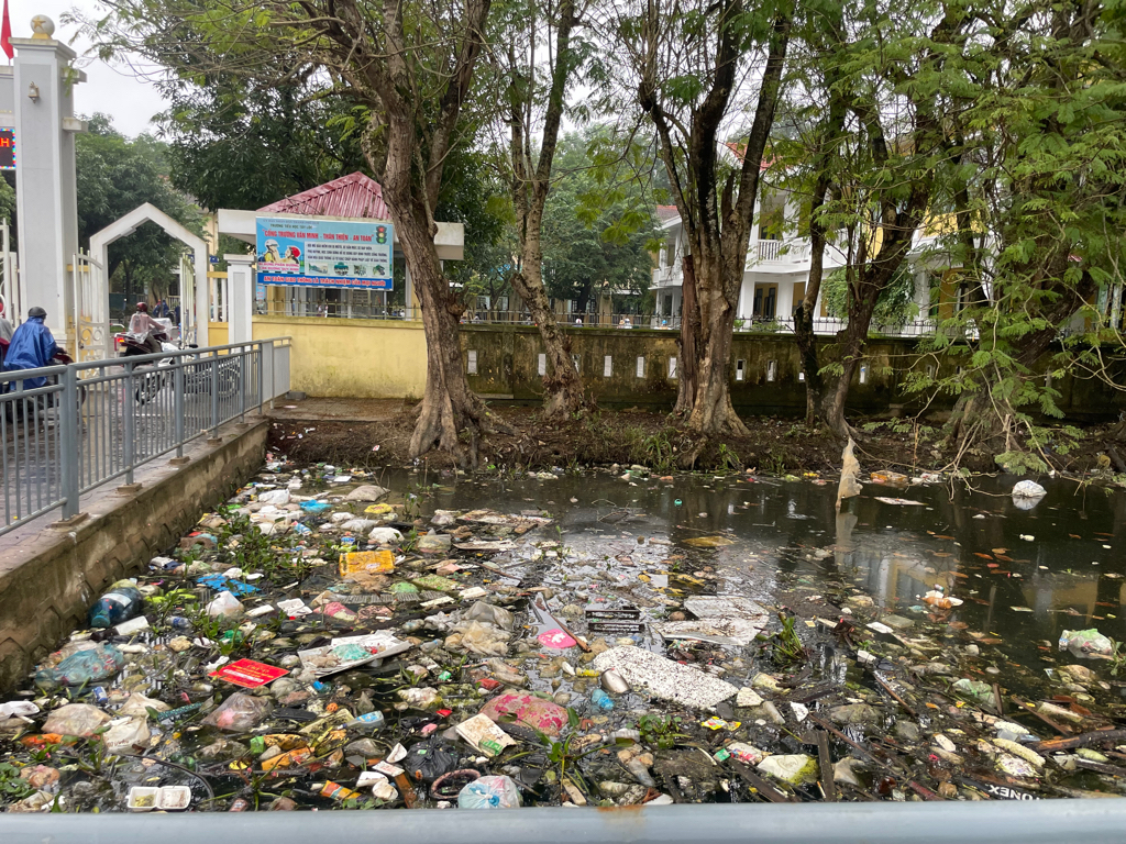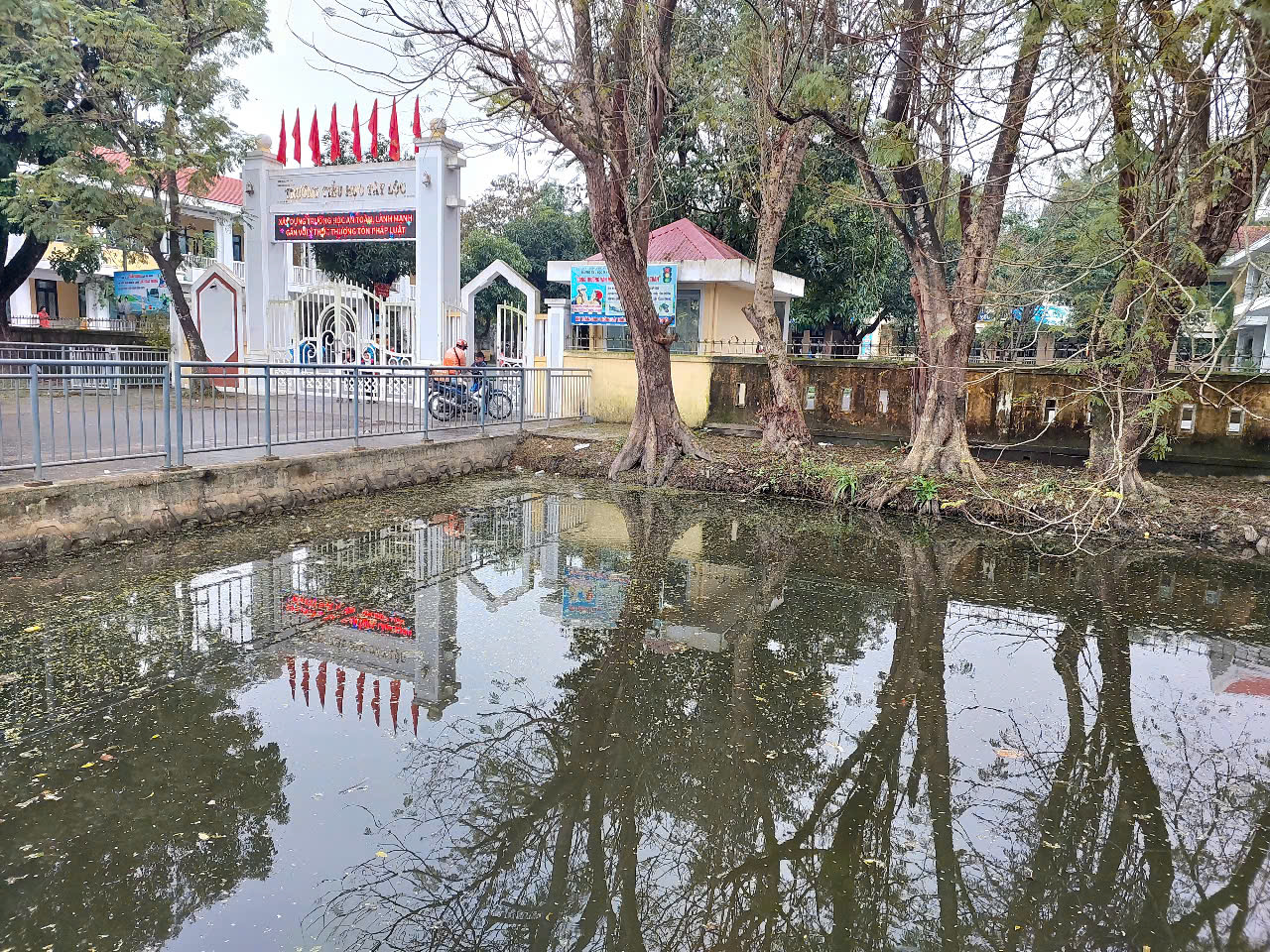 Hồ nước trước Trường Tiểu Học Tây Lộc bị ô nhiễm nghiêm trọng