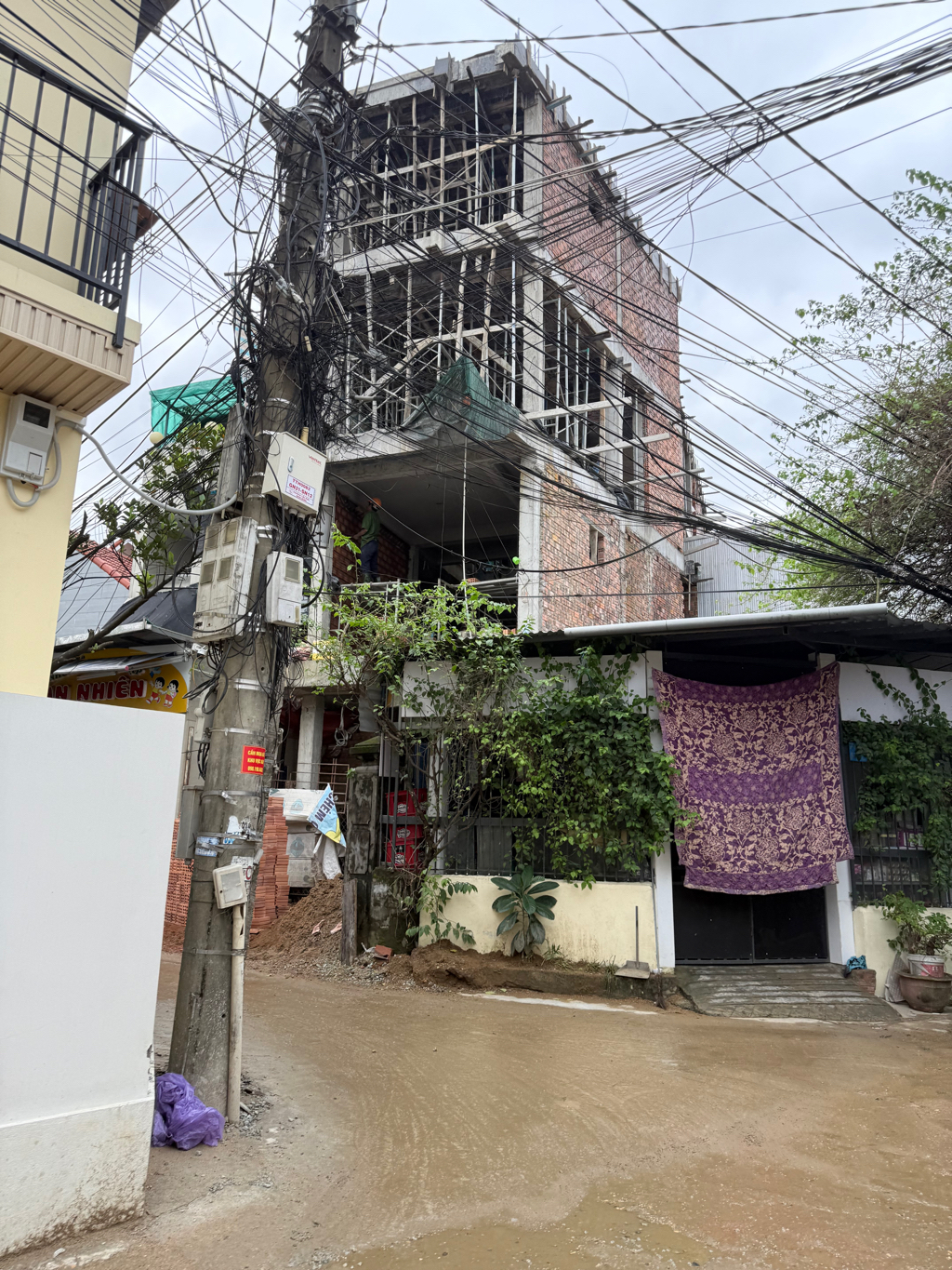 Ngôi nhà đang xây ở ngã 3 kiệt 143 Phan Bội Châu và đường Ấu Triệu nhiều lần đổ mê để xi măng, cát sạn chảy ra đường không dọn sạch, tạo ra bùn lầy khiến nhiều người đi bộ trượt ngã.
