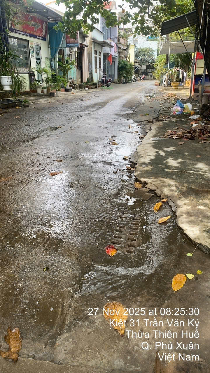 Kiệt 31 Trần Văn Kỷ từ sau lụt cuối tháng 10/2025 thường xuyên bị ngập do cống thoát nước nghẽn. Mong công ty môi trường đô thị sớm khắc phục. Xin chân thành cảm ơn. Ảnh chụp sáng nay 26/11/2025.