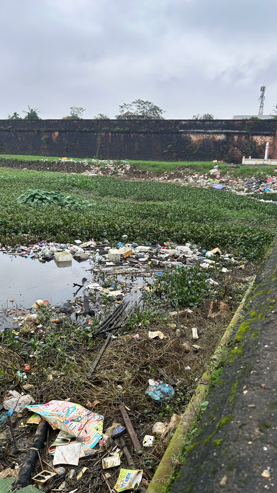 Kiến nghị dọn rác sau lũ tại hai bên hồ Hộ thành hào cửa Chánh Tây rác và bèo tây rất nhiều. Đề nghị cơ quan chức năng có biện pháp xử lý. Cảm ơn. Ảnh chụp tại Cửa Chánh Tây lúc 10g48p ngày 26/11/2025.