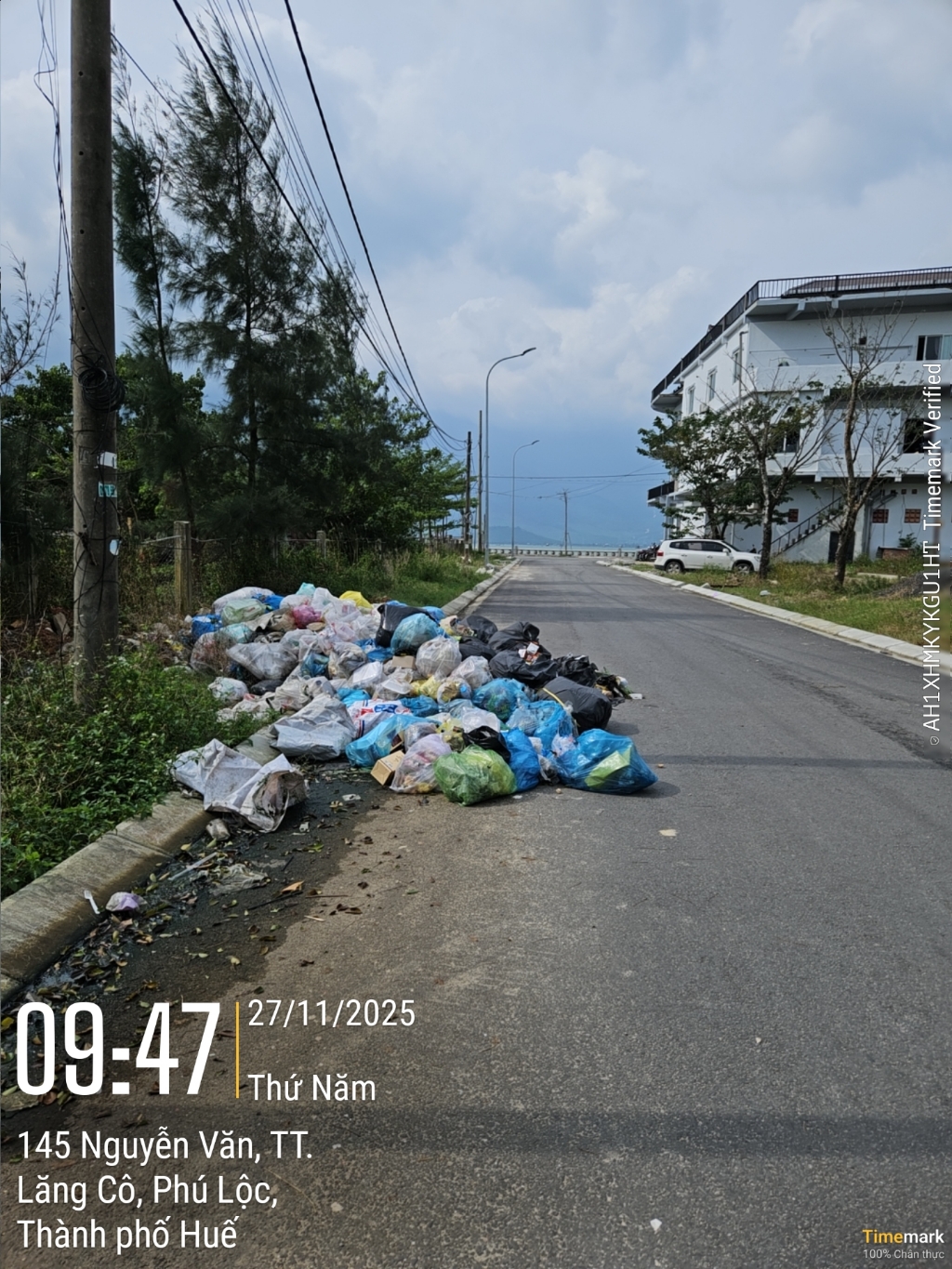 Qua kiểm tra hiện trường tại vị trí phản ánh và làm việc với Hợp tác xã Điện nước Lăng Cô, khu vực phản ánh định kỳ thu gom rác 2 ngày/1 lần. Tuy nhiên, vị trí tập trung rác nói trên có nhiều điểm dừng chân, nhà hàng nên lượng rác sinh hoạt hàng ngày rất lớn, người dân tập trung rác không đúng ngày thu gom nên xảy ra tình trạng rác thải tồn đọng. Hiện nay, vị trí phản ánh nêu trên đã được thu gom, xử lý (hình ảnh đính kèm chụp ngày 02/12/2025).