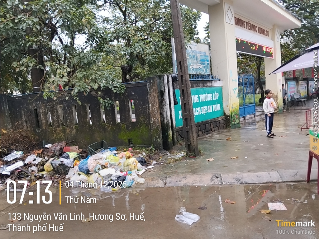 Đề nghị Chính quyền địa phương phối hợp với BGH Nhà trường và đơn vị liên quan để can thiệp, yêu cầu thu dọn vệ sinh, để không còn tình trạng xã rác trước cổng trường Tiểu học Hương Sơ, địa chỉ: 133 Nguyễn Văn Linh, Hương An, TP Huế; rất thối, rất mùi, tội các cháu học sinh cắp sách đến trường lắm ah.