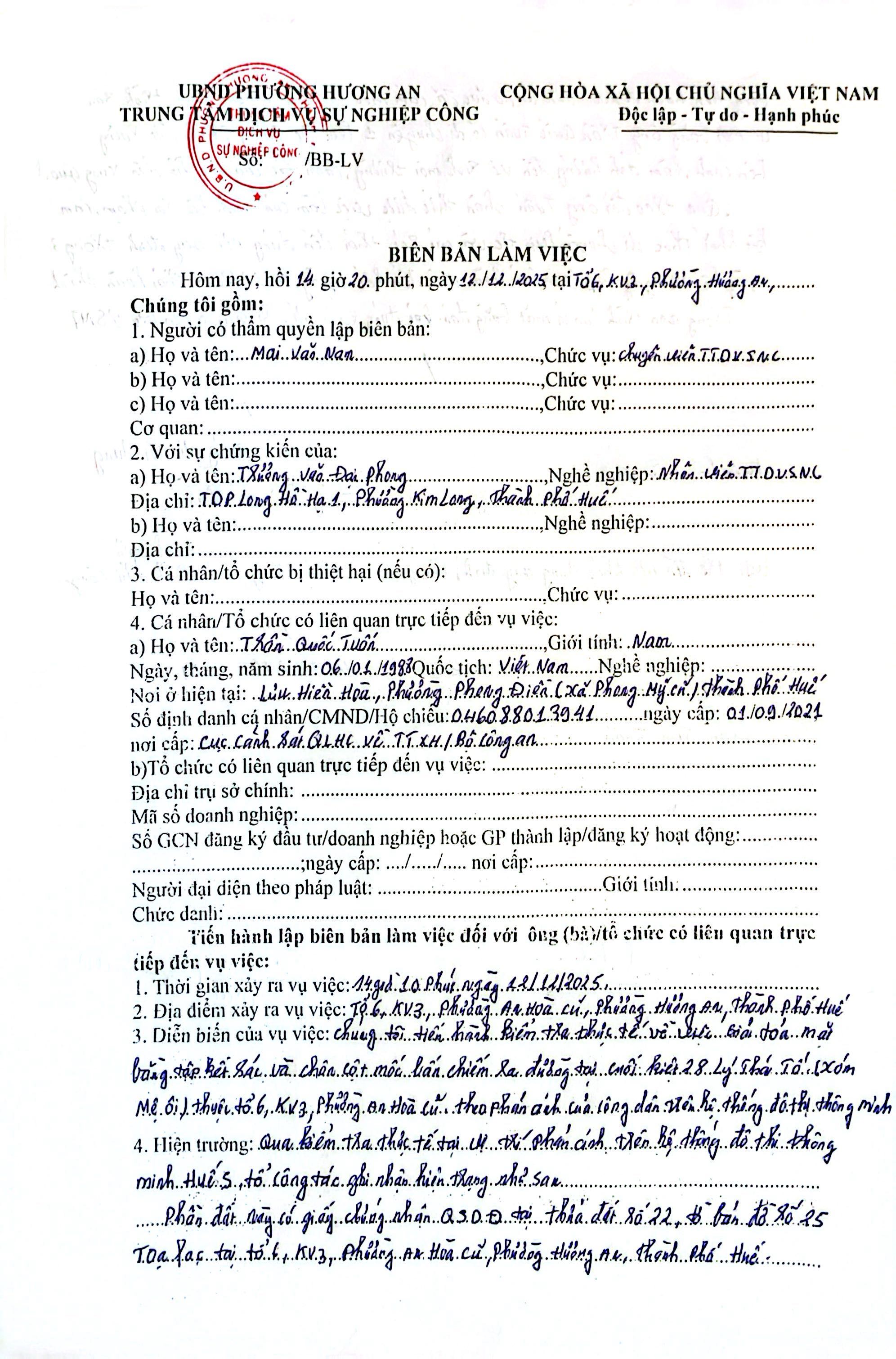 Vấn đề quý Ông/Bà phản ánh, Trung tâm Dịch vụ sự nghiệp công phường Hương An xin được trả lời như sau: