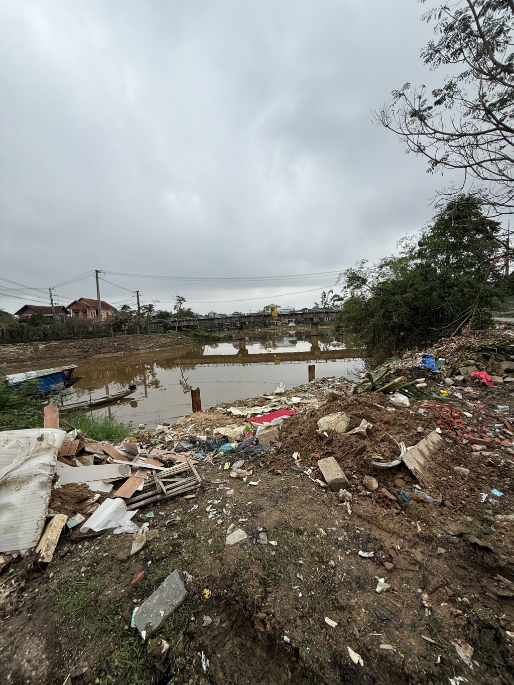 Rác từng bãi không thu gom gây ô nhiễm môi trường sông nước và xung quanh, xe môi trường qua hằng ngày vẫn không thu gom, sau đợt lũ xác động vật chết và rác ùn ứ gây ô nhiễm nghiêm trọng, rác xây dựng đổ ngổn ngang tại cầu Ba Bến, phường Kim Long, thành phố Huế.