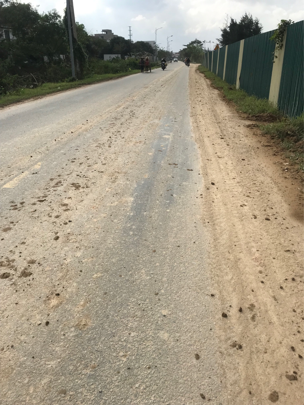 Phản ánh tình trạng xe chở đất công trình để rơi vãi đất bùn kéo dài, gây bụi cho người đi đường và ô nhiễm cảnh quan, ở đoạn đường Hoàng Quốc Việt về Cầu Ngói Thanh Toàn.