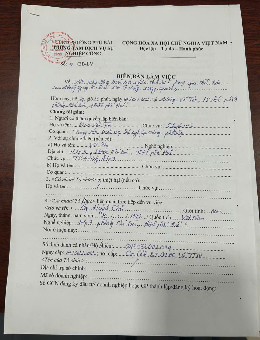 Vấn đề quý Ông/Bà phản ánh, UBND phường Phú Bài đã chỉ đạo Trung tâm Dịch vụ sự nghiệp công phường kiểm tra và xin thông báo kết quả như sau: