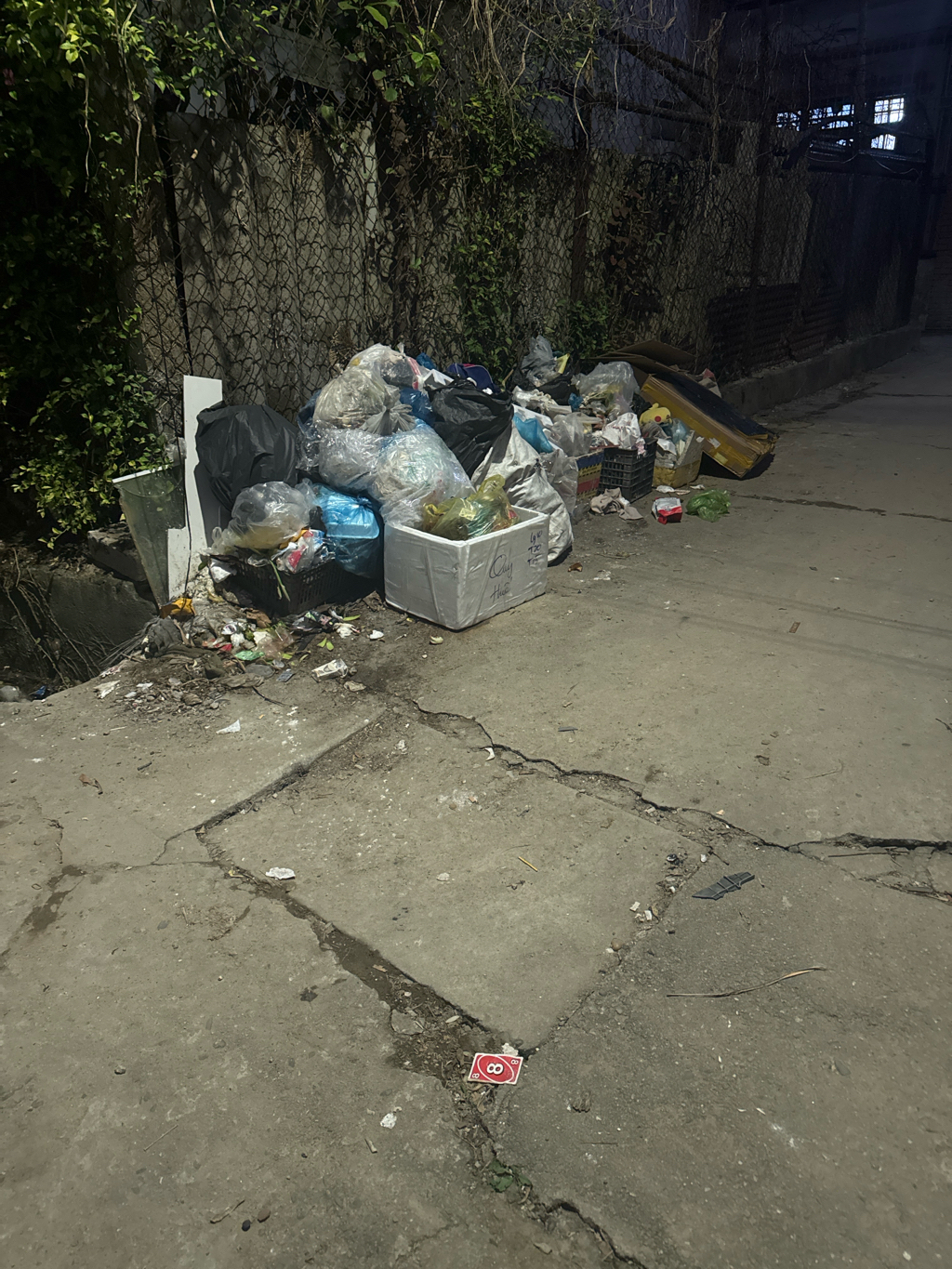 Khu vực trên xuất hiện tình trạng tập kết rác thải sinh hoạt và phế liệu không đúng nơi quy định. Cụ thể: