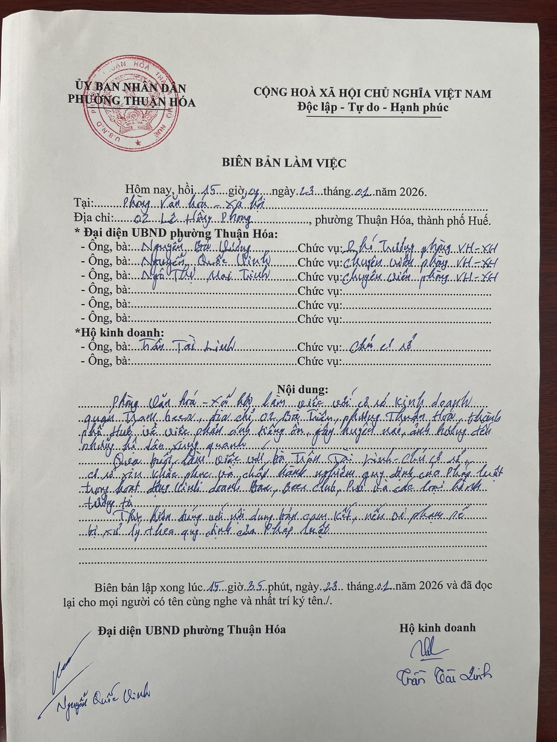 Quán Trạm beer, 02 đường Bà Triệu, phường Thuận Hoá, TP Huế, thường xuyên mở loa lúc 22 giờ trở đi, gây khó chịu, ảnh hưởng giấc ngủ cho mọi người xung quanh, có ngày mở tới sáng. Video quay lúc 1h25, ngày 17/1/2026. Mong cơ quan chức năng sớm giải quyết.