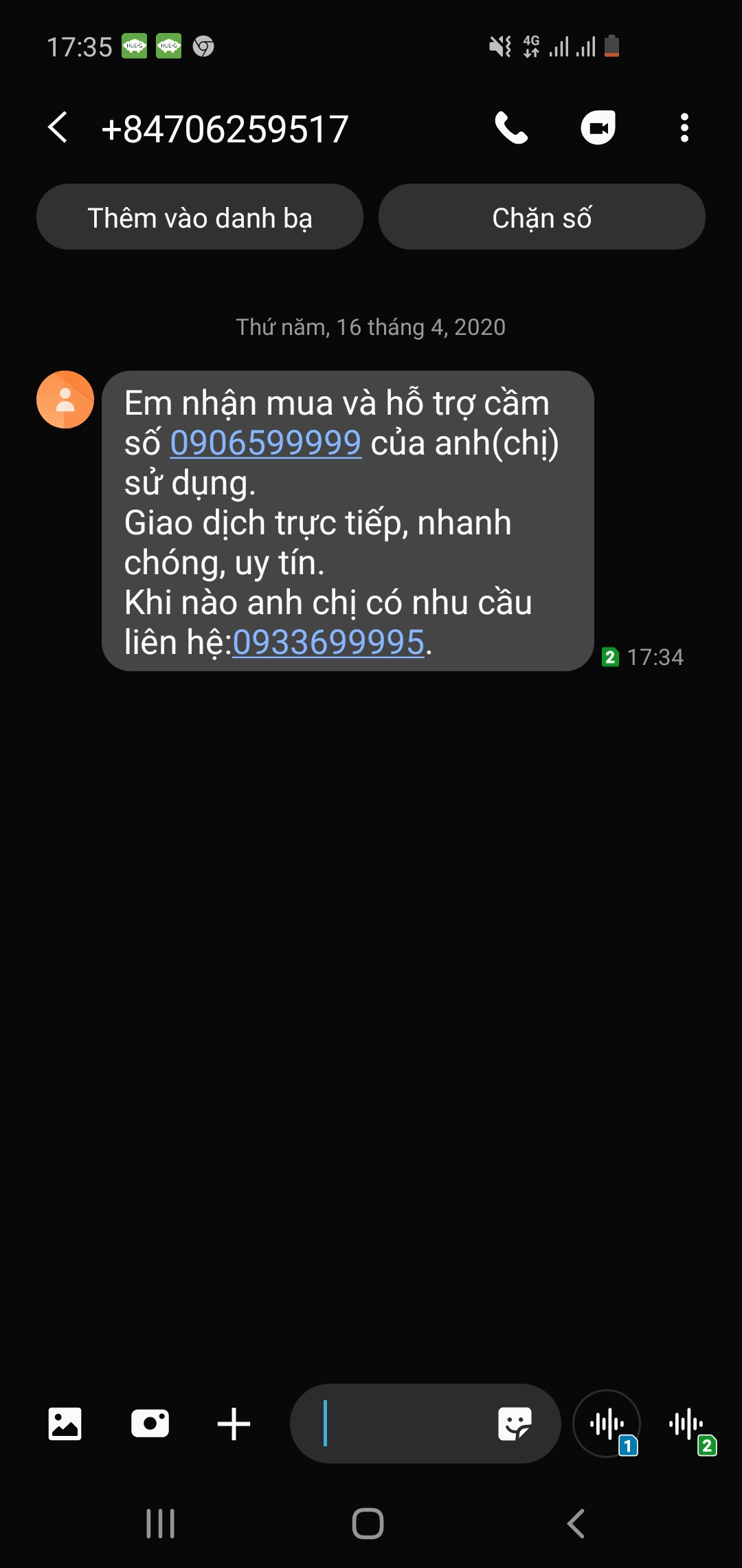 Đề nghị xử lý tình trạng tin nhắn rác từ số di động 0706259517. Trân trọng
