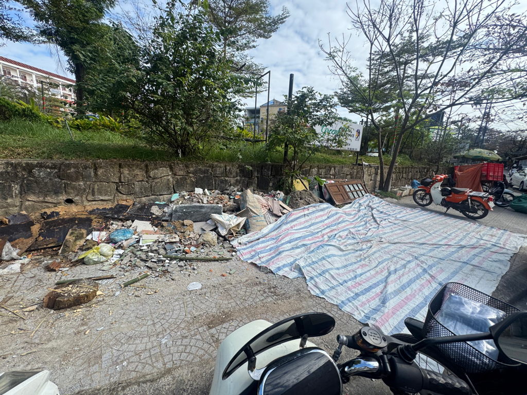 Đối diện 217 Trần Phú, vỉa hè bị lấn chiếm đổ rác thải, vật liệu xây dựng, lấn chiếm buôn bán. Nhìn bẩn thỉu, nhếch nhác, kéo dài đã lâu. Mong được chính quyền quan tâm chấn chỉnh.