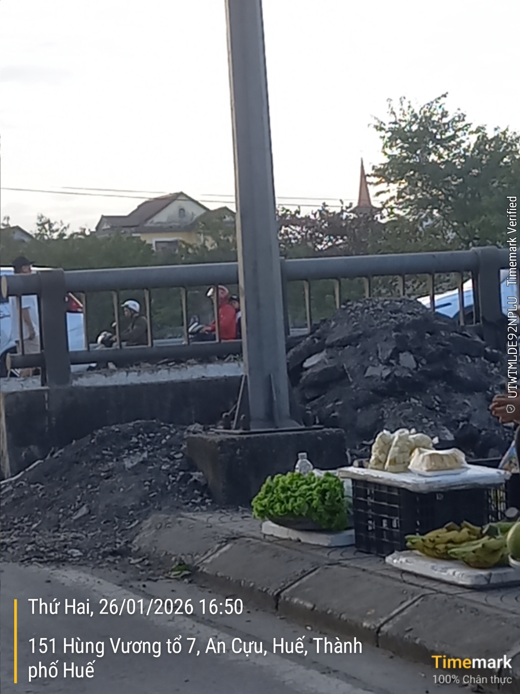 Tôi xin phản ánh tại khu vực chân cầu An Cựu, đoạn giao đường Hùng Vương – Hải Triều (phường An Cựu, TP Huế) hiện còn đống rác thải xây dựng, đất đá tồn đọng sau đợt cải tạo, sửa chữa mặt cầu.
