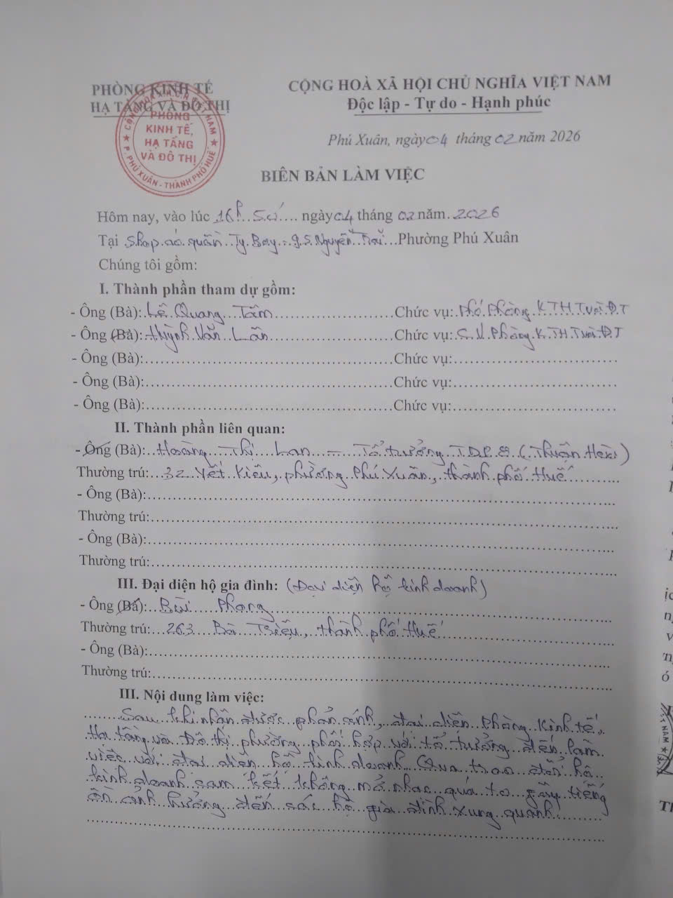 Vấn đề quý Ông/Bà phản ánh, UBND phường Phú Xuân xin thông báo kết quả như sau: