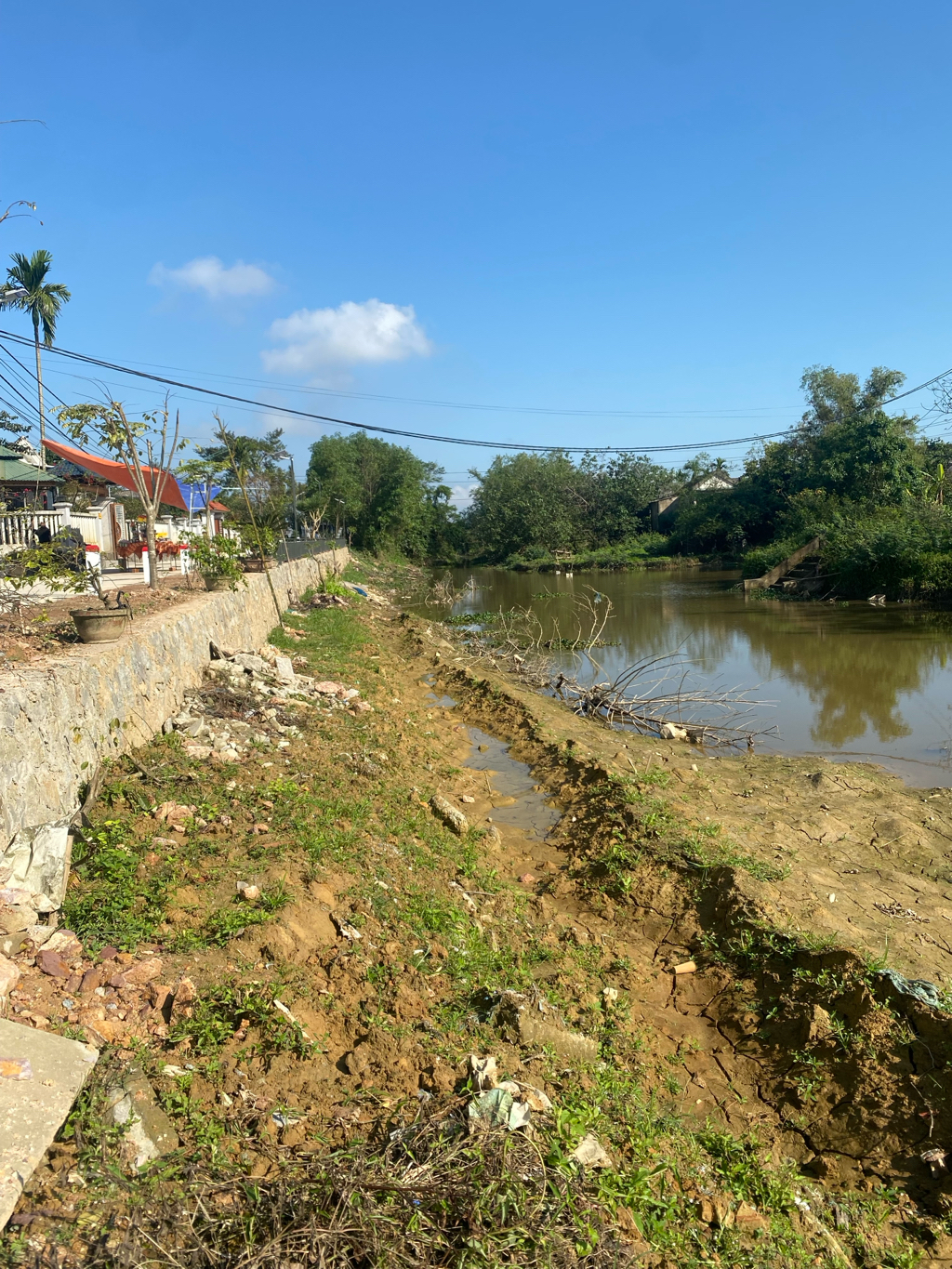 Con sông này trước đây rất thoáng và đẹp, nước chảy tự nhiên, tạo cảnh quan sạch sẽ cho khu dân cư. Tuy nhiên, trong quá trình thi công bờ kè, đội thi công đã chặt cây nhưng không vét đất, không dọn dòng chảy khiến đất đá, cành nhánh bị ứ đọng, làm nước sông bị kẹt, chảy yếu và mất đi vẻ mỹ quan vốn có. Tình trạng này không chỉ ảnh hưởng đến cảnh quan mà còn tiềm ẩn nguy cơ ngập úng, ô nhiễm môi trường. Người dân mong muốn đội thi công sớm khắc phục, trả lại mặt bằng thông thoáng cho dòng sông để nước chảy thuận lợi và giữ gìn vẻ đẹp chung của khu vực. Địa chỉ: Sông Bồn Trì, phường Hương An, thành phố Huế Đi theo mép đường Bồn Trì gần số nhà 81 TDP Bồn Trì. Mong đội thi công hợp tác vét lại trả lại dòng sông như ban đầu.