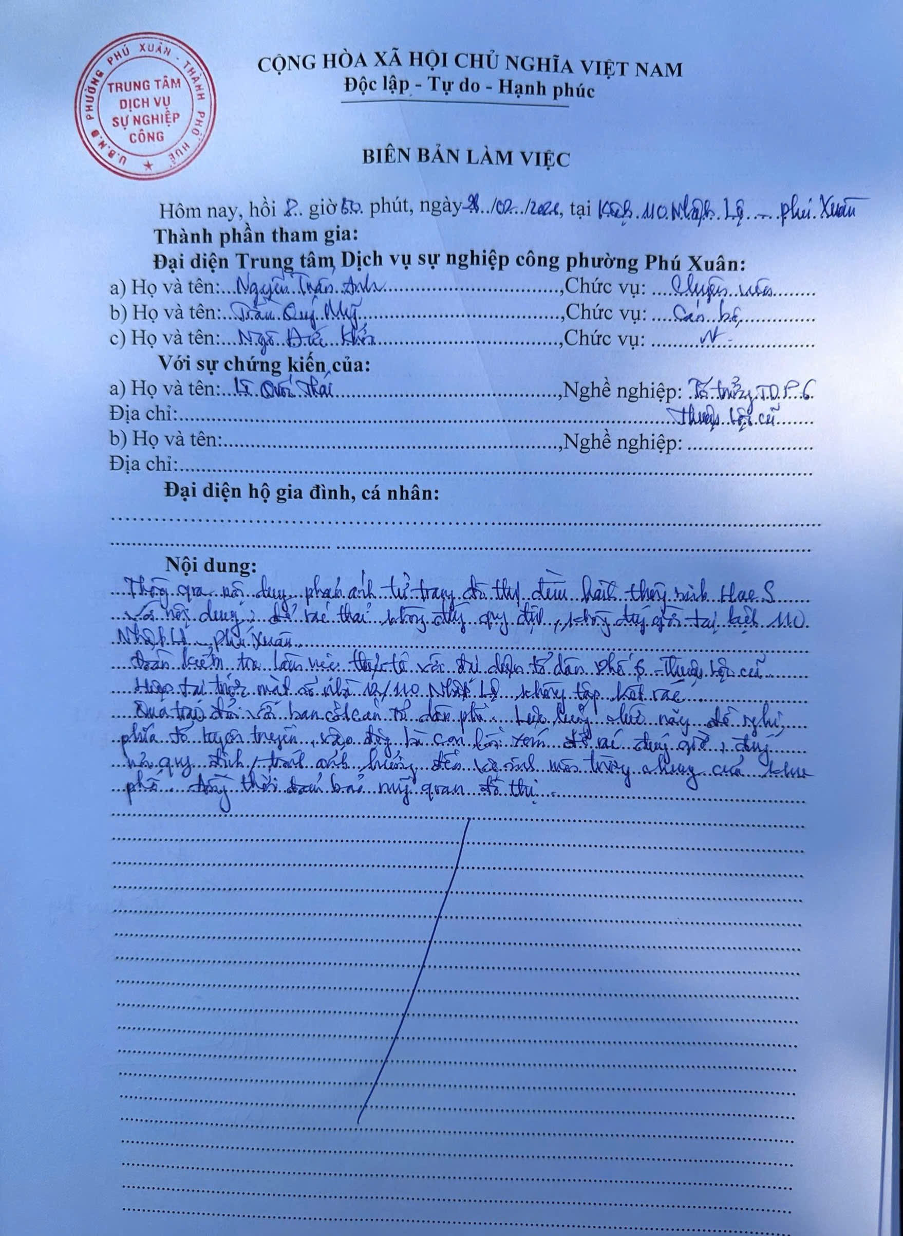 Vấn đề quý Ông/Bà phản ánh, Trung tâm Dịch vụ sự nghiệp công phường Phú Xuân kiểm tra và xin thông báo kết quả như sau:
