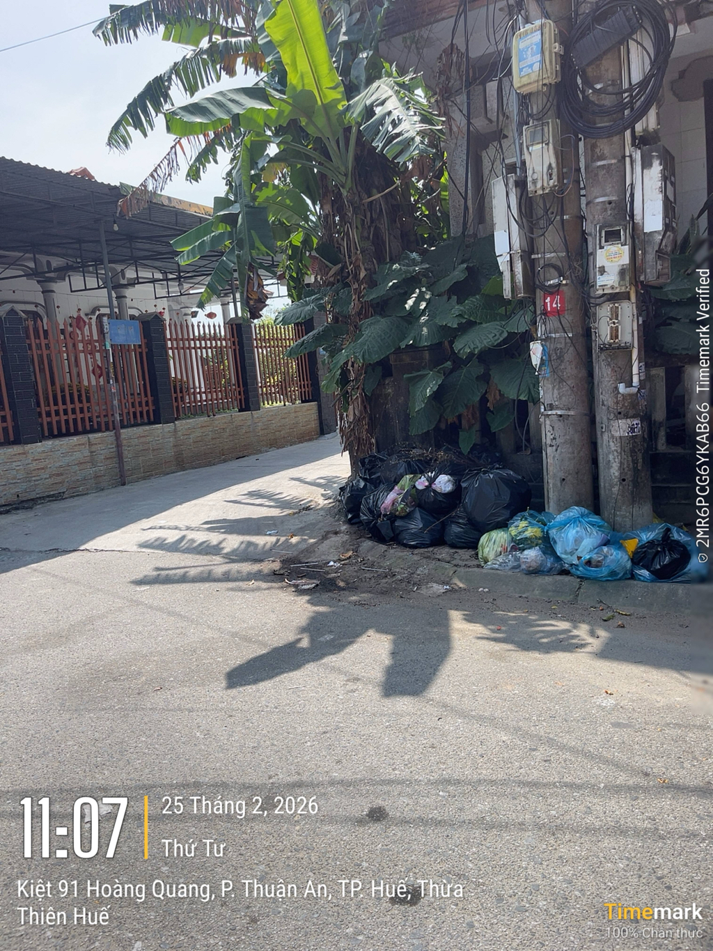Tôi muốn phản ánh hình ảnh quán cafe 1900 ngay tại Kiệt 91 đường Hoàng Quang, Phường Thuận An, Thành Phố Huế thường xuyên để rác thải nơi này (hình ảnh) làm mất vẻ đẹp cảnh quan, có mùi hôi thối gây ảnh hưởng môi trường. Trong khi đó cách 100 mét có thùng rác mà quán không bỏ vào thùng, luôn tập kết rác thải ở đây. Kính mong các cơ quan ban ngành phường Thuận An xử lý gấp.