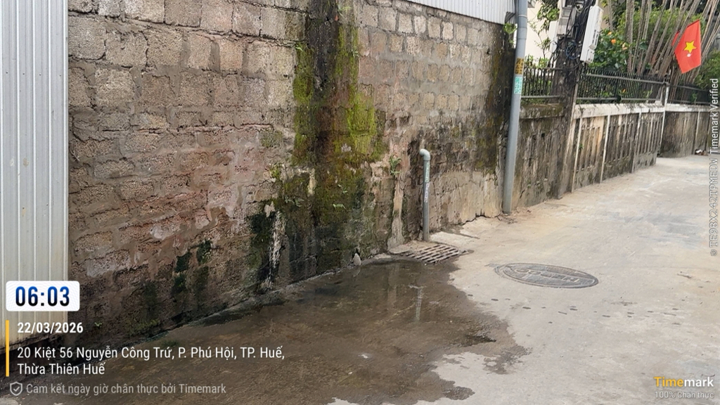 Sau khi tiếp nhận phản ánh của Quý Ông/Bà, Trung tâm Dịch vụ sự nghiệp công phường Thuận Hóa đã cử lực lượng trật tự đô thị đến kiểm tra thực tế tại hiện trường. Qua kiểm tra, lực lượng ghi nhận có tình trạng nước thải chảy ra đường kiệt, gây ẩm ướt mặt đường, mất mỹ quan đô thị và ảnh hưởng đến vệ sinh môi trường khu vực.