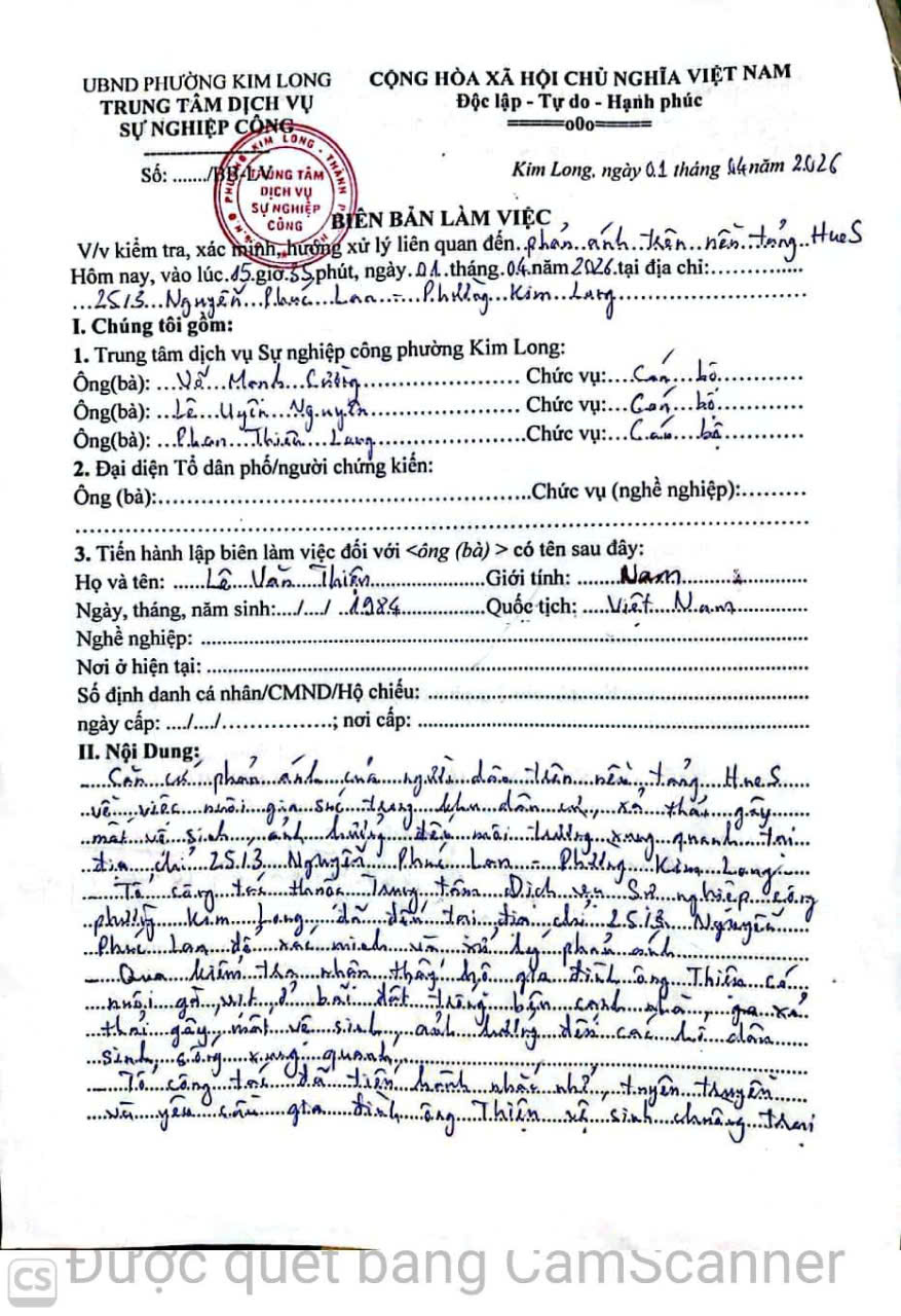 Vấn đề quý Ông/bà phản ánh, UBND phường Kim Long xin thông báo kết quả xử lý như sau: