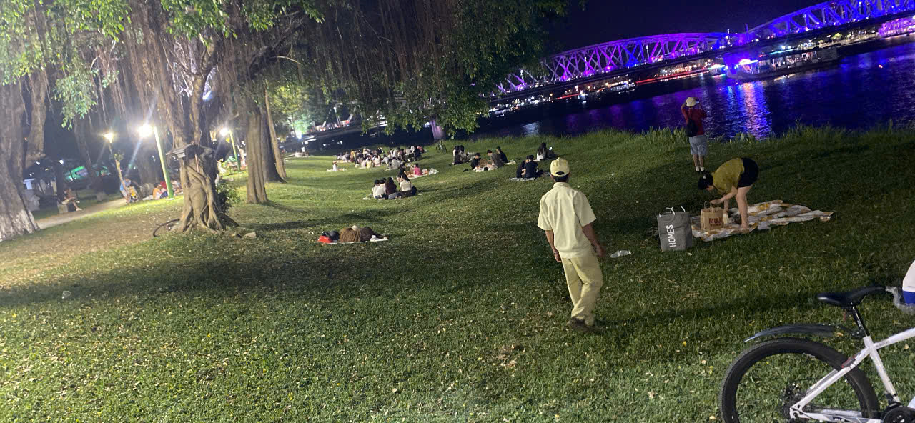 Công viên là nơi công cộng để người dân vui chơi, giải trí và thư giãn. Tuy nhiên, Trung tâm vẫn bố trí bảo vệ thường xuyên kiểm tra các công viên dọc 2 bờ sông Hương, nhắc nhở người dân không mở nhạc quá to gây ảnh hưởng đến mọi người xung quanh; đính kèm hình ảnh.