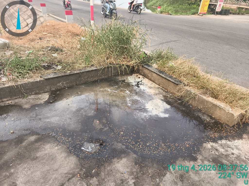 Rác thải vớt dưới sông lên chảy nước ra động lại bốc mùi và rất hôi thối tại số 2 Nguyễn Sinh Cung, phường Vỹ Dạ, thành phố Huế. Rất mong được xử lý để có một môi trường trong sạch hơn. Hình ảnh được chụp vào lúc 8 giờ 37 phút ngày 19/4/2026.