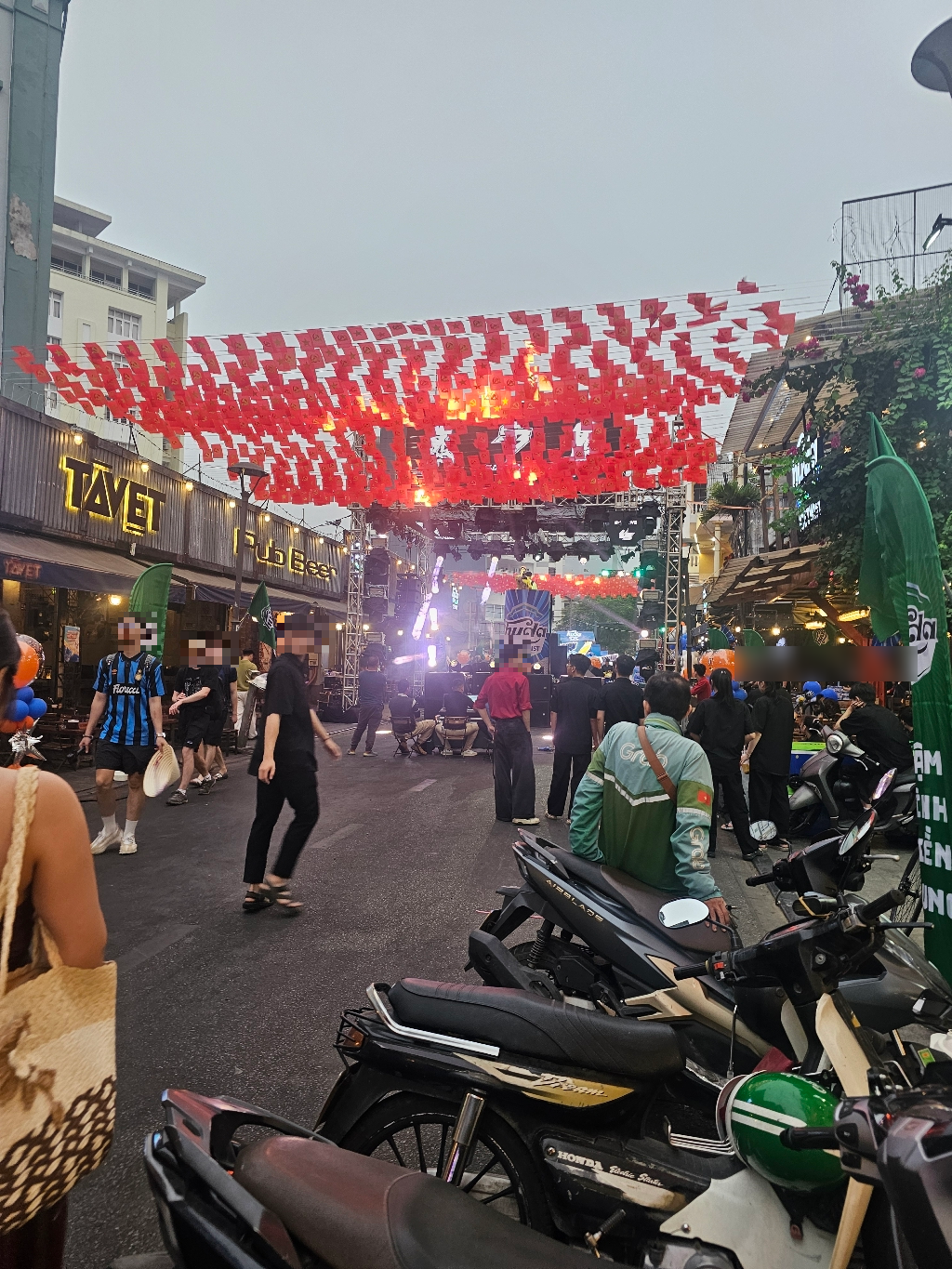 Quán tà vẹt chặn đường làm sân khấu, mở nhạc hết công suất, gây bức xúc cho người dân ảnh chụp lúc 17h30 ngày 19/4/2026, số 9-11 đường Võ Thị Sáu, phường Thuận Hóa, Tp Huế.