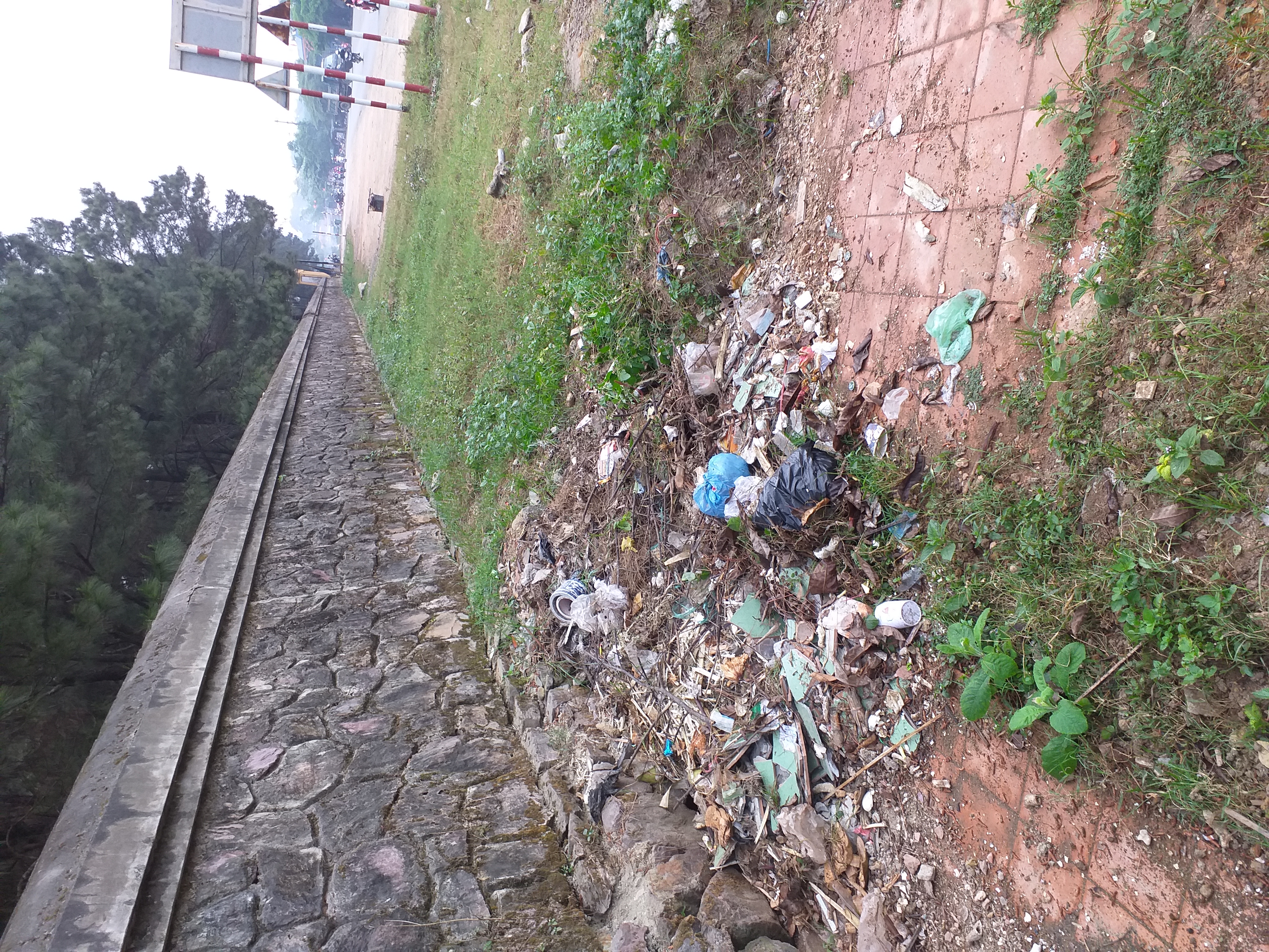 Góc đường Ngự Binh Tam Thai không có thùng chứa rác, người dân đem rác qua đỗ nơi tường di tích Đàn Nam Giao