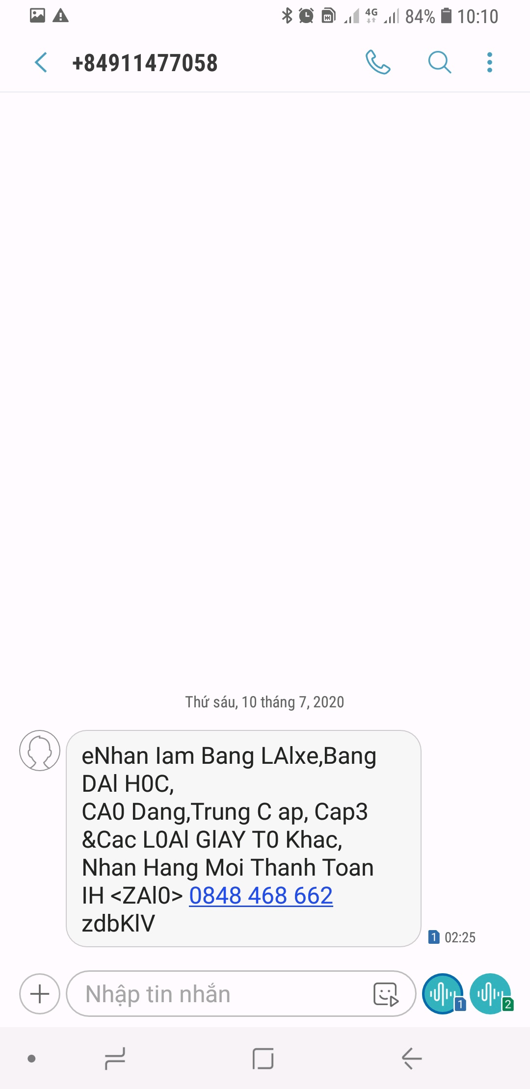 - Tin nhắn với mục đích lừa đảo, quấy rối hoặc phát tán virus máy tính, phần mềm gây hại hoặc gửi các thông tin độc hại như lừa đảo, chống phá Nhà nước, kích động bạo lực.
