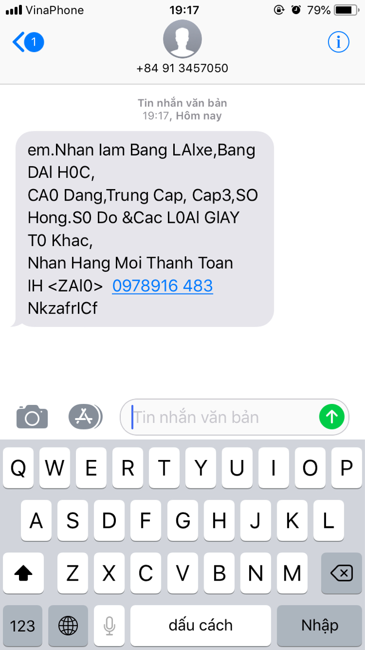 - Tin nhắn với mục đích lừa đảo, quấy rối hoặc phát tán virus máy tính, phần mềm gây hại hoặc gửi các thông tin độc hại như lừa đảo, chống phá Nhà nước, kích động bạo lực.
