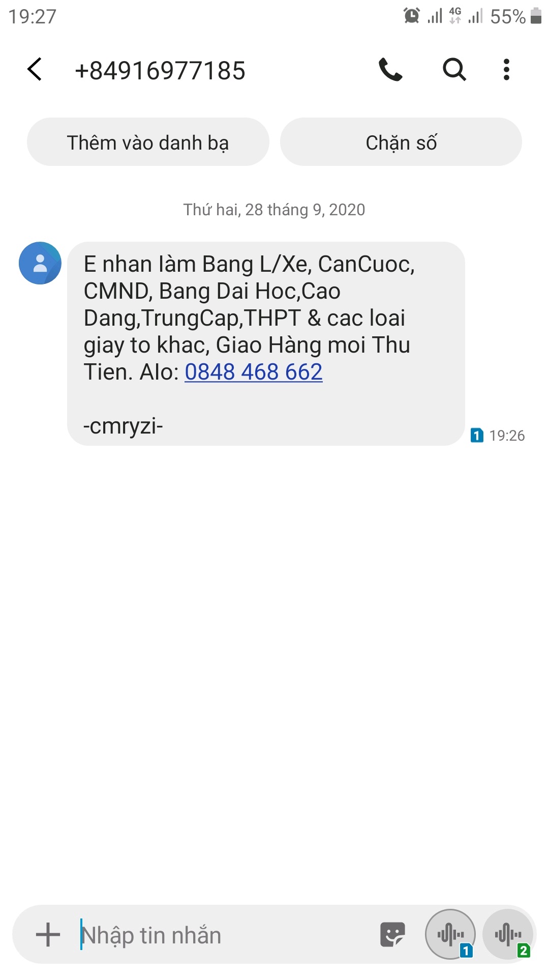 Như vậy, theo Nghị định 91/2020/NĐ-CP thì tin nhắn mà quý Ông/Bà nhận được là tin nhắn Quảng cáo không đúng quy định.