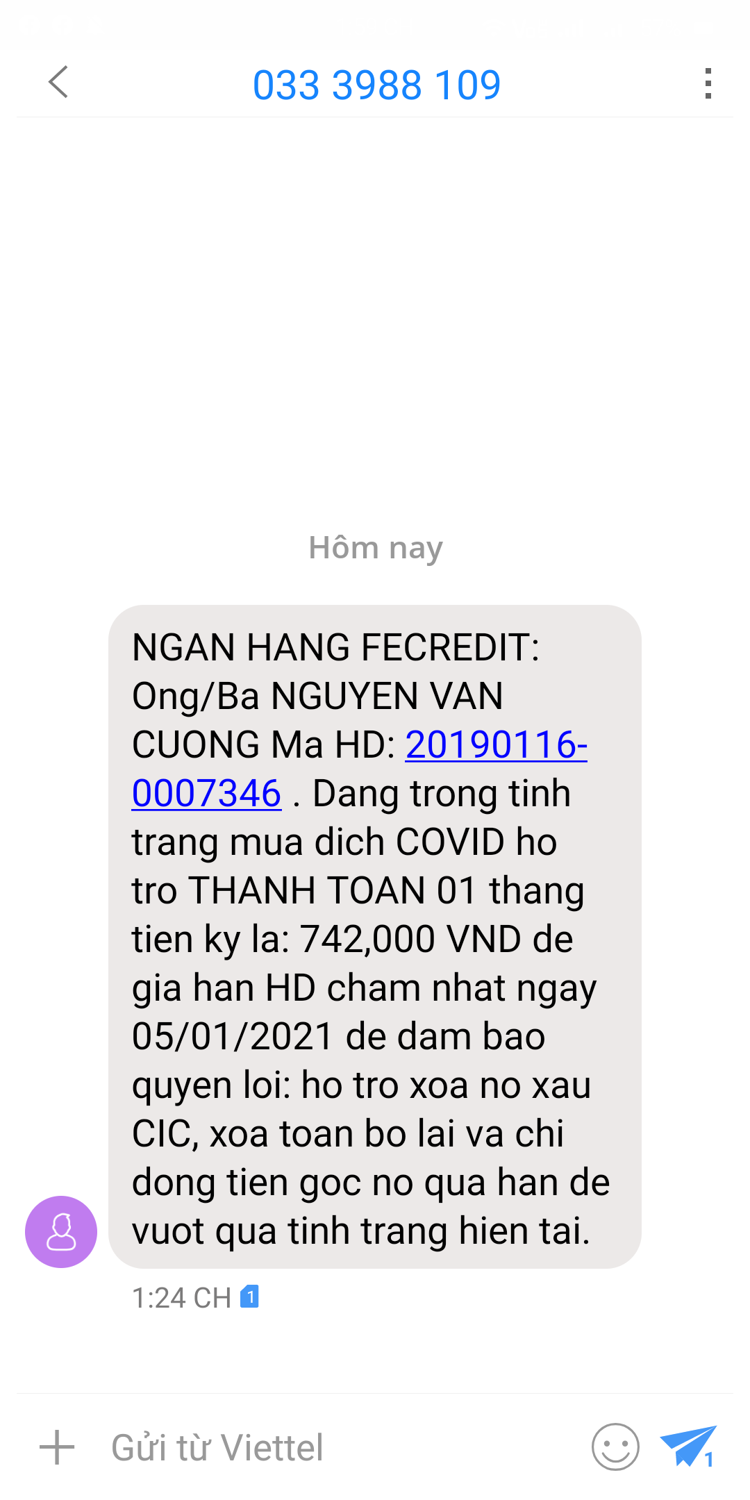Đề nghị xử lý tin nhắn rác, một loạt tin nhắn đòi tiền ông Cường thiệt hay giả cứ nhắn vào số máy này làm phiền. Đề nghị xử lý, cảm ơn.