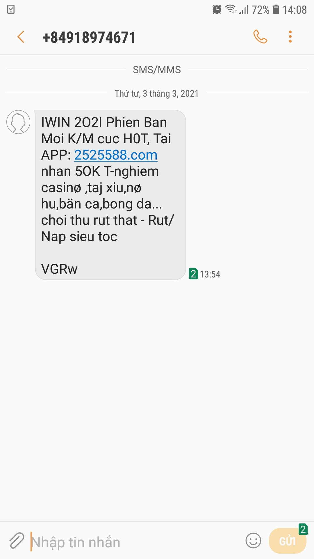 - Tin nhắn quảng cáo mà không được sự đồng ý trước của Người sử dụng hoặc tin nhắn quảng cáo vi phạm các quy định về gửi tin nhắn quảng cáo;