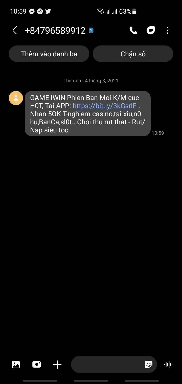 Tin nhắn quảng cáo rác, còn kèm link không biết có chứa mã độc hay không. Đề nghị được xử lý.