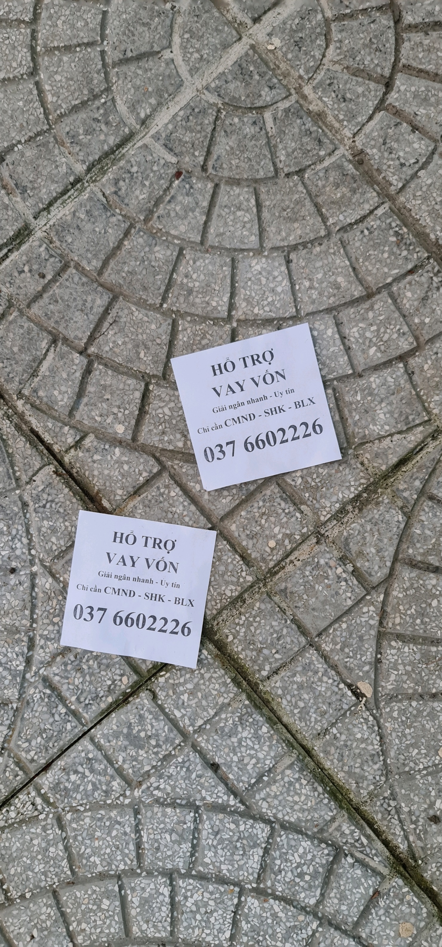 Rải tờ rơi rao vặt cho vay gây ô nhiễm môi trường và có khả năng cho vay nặng lãi, vi phạm pháp luật tại đường Vạn Xuân, phường Kim Long, tp Huế. Đề nghị kiểm tra xử lý.