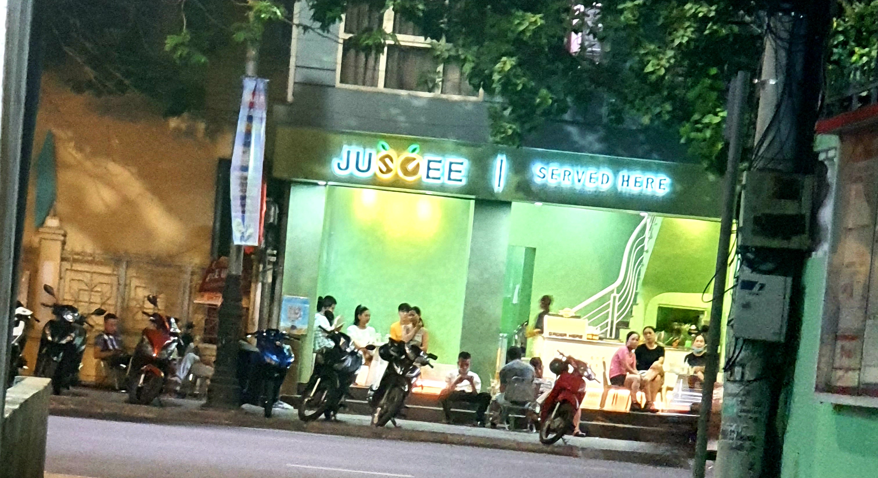 Quán cà phê Jusoee tại 57 đường Nguyễn Huệ bán cà phê số lượng người vượt quá quy định, ảnh chụp vào lúc 20h50 ngày 1/6/2021. Kính gửi cơ quan chức năng xử lý.