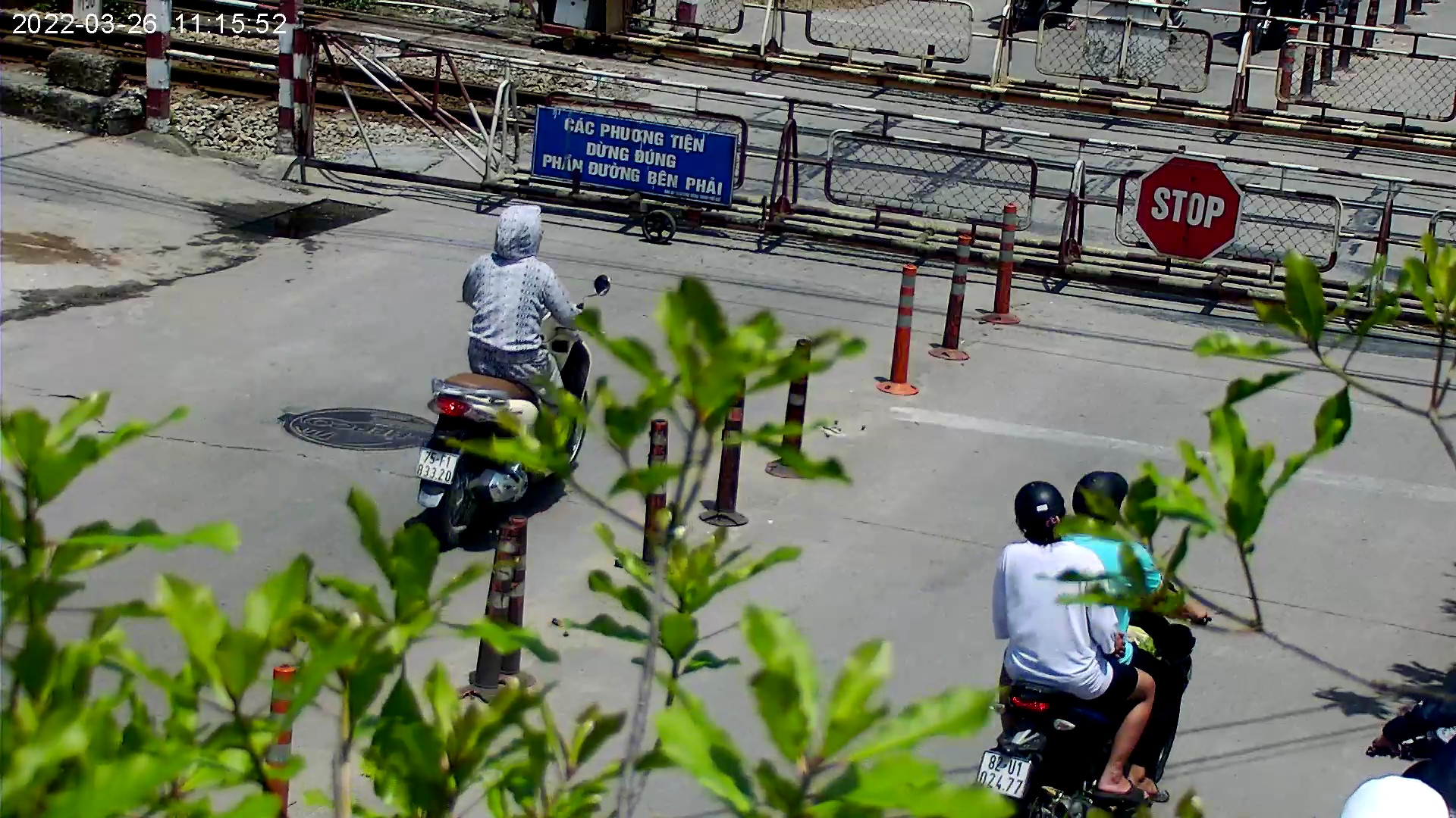 Vào lúc 11 giờ 15 phút ngày 26/03/2022 trên tuyến đường Trần Phú, xe mô tô mang biển kiểm soát 75F183320, dừng xe chờ tàu sai quy định gây ùn tắc giao thông.
