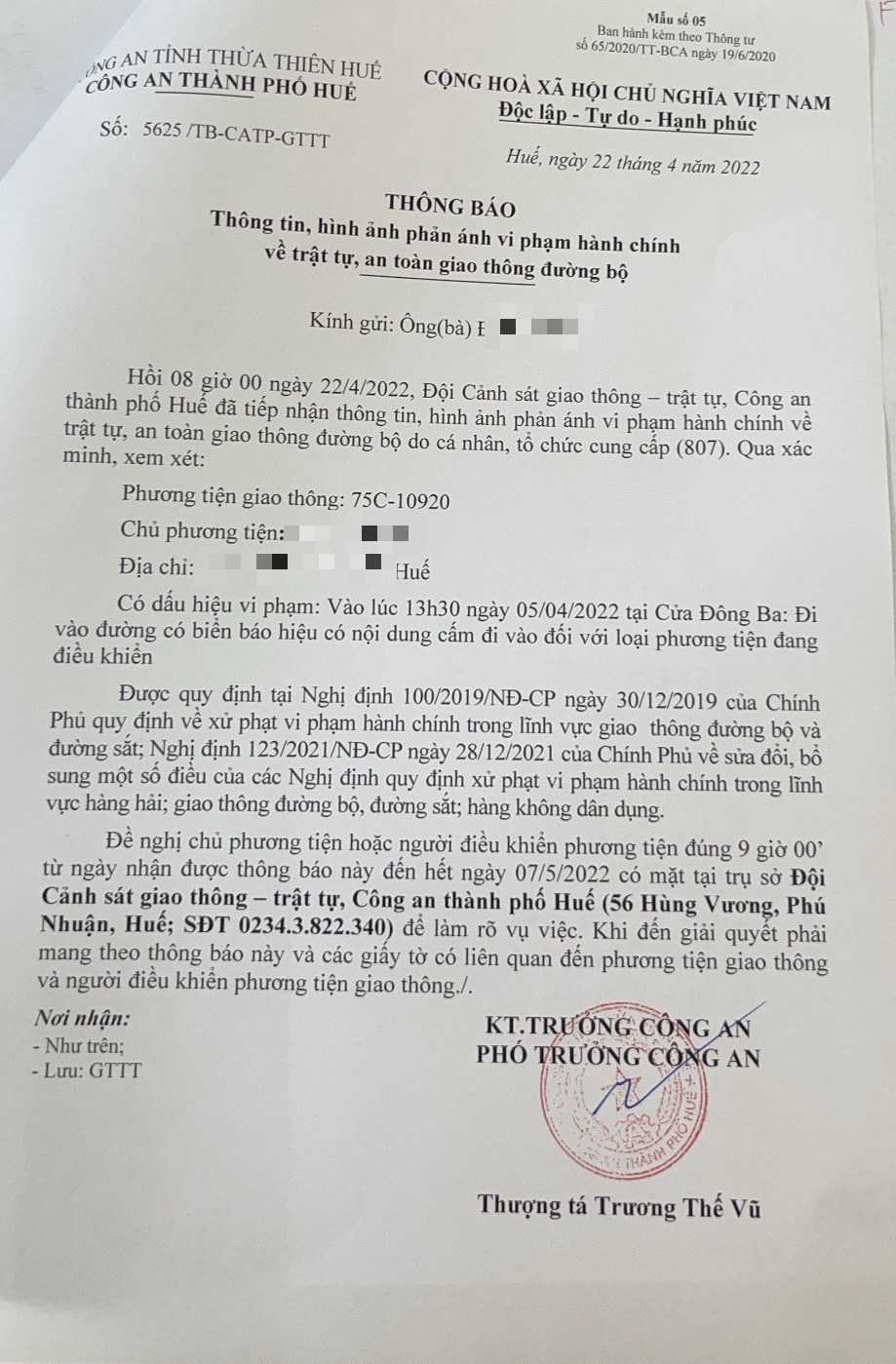 Vấn đề Ông/Bà phản ánh, Công an tỉnh đã chỉ đạo Công an thành phố Huế kiểm tra và trả lời như sau: