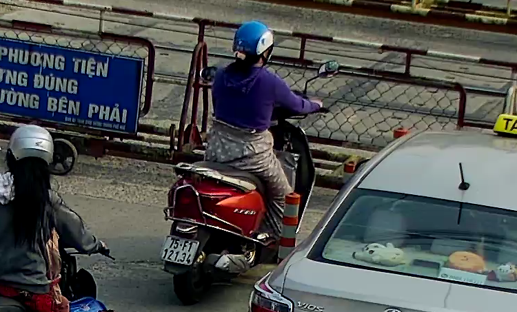 Từ hình ảnh được cung cấp, xác định người điều khiển phương tiện 75F112134 vi phạm lỗi: Điều khiển xe không đi bên phải theo chiều đi của mình (quy định tại điểm g, Khoản 3, Điều 6 Nghị định 100/2019/NĐ-CP, sửa đổi tại Nghị định 123/2021/NĐ-CP).