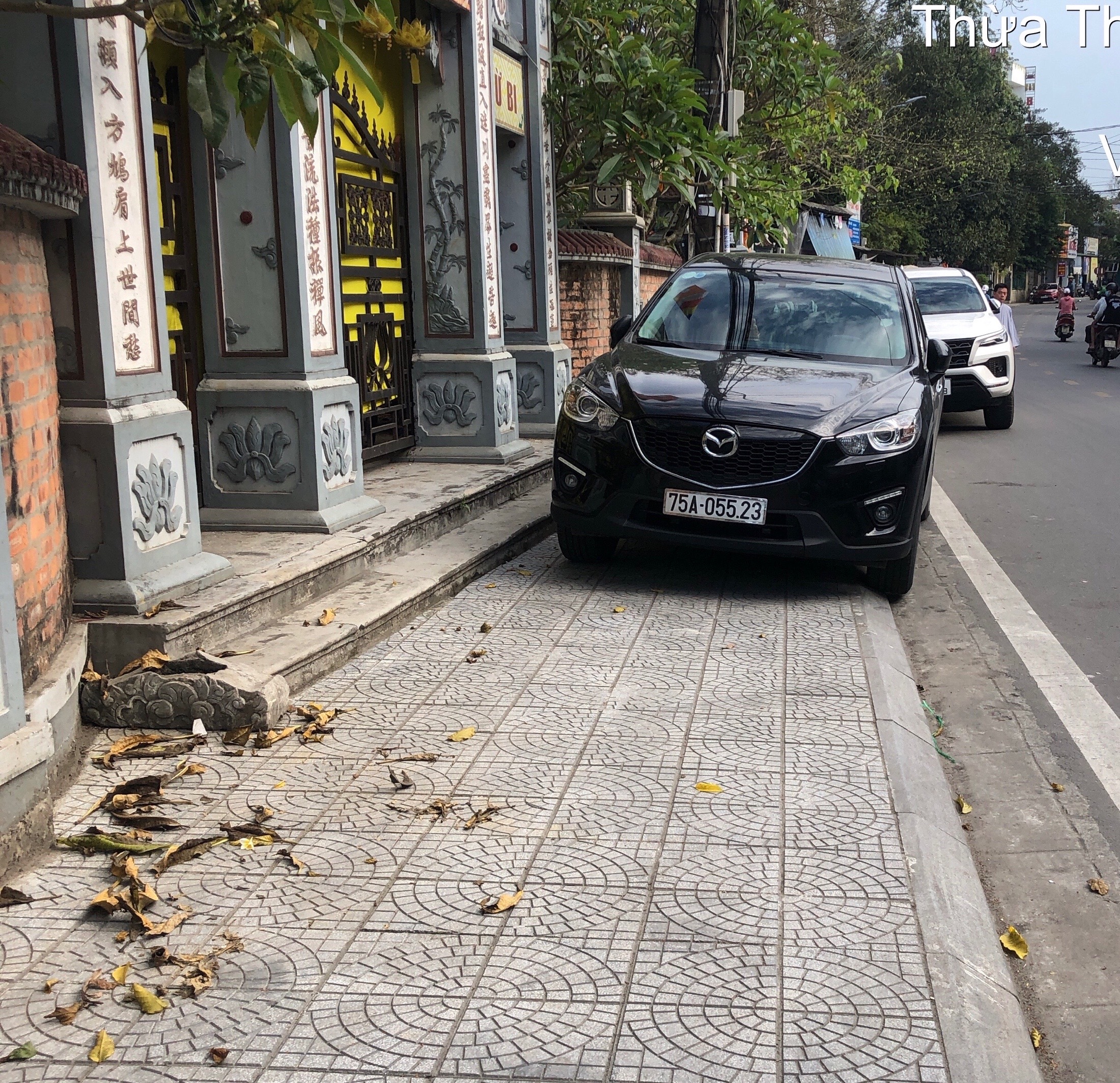 Từ hình ảnh được cung cấp, xác định người điều khiển phương tiện 75A05523 vi phạm lỗi: Đỗ xe ở hè phố trái quy định của pháp luật (quy định tại điểm e, khoản 3, Điều 5 Nghị định 100/2019/NĐ-CP, sửa đổi, bổ sung tại Nghị định 123/2021/NĐ-CP).