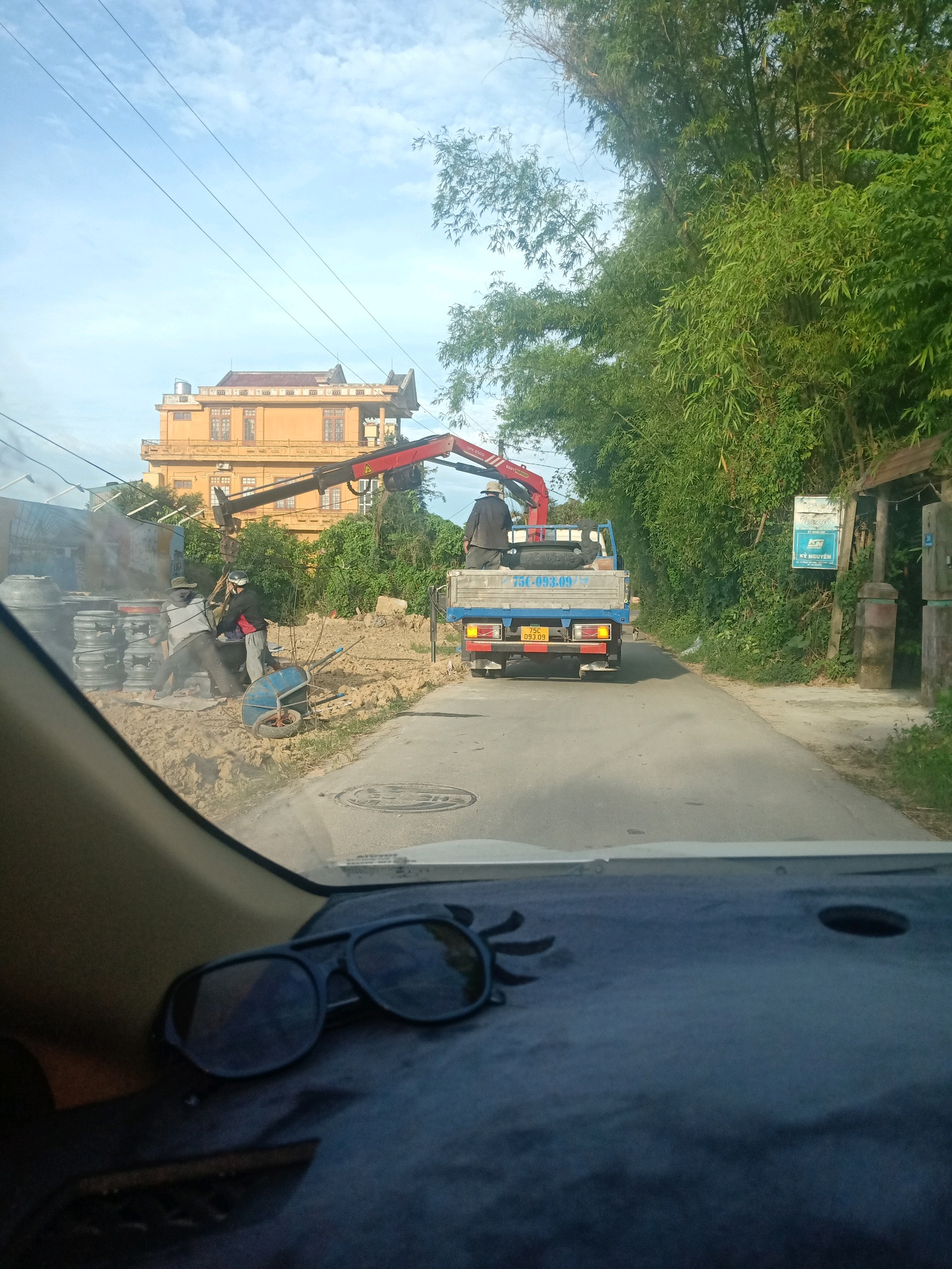 Từ hình ảnh được cung cấp, xác định người điều khiển phương tiện 75C09309 vi phạm lỗi: Đỗ xe tại vị trí nơi phần đường có bề rộng chỉ đủ cho một làn xe (quy định tại Nghị định 100/2019/NĐ-CP; sửa đổi, bổ sung tại Nghị định 123/2021/NĐ-CP).