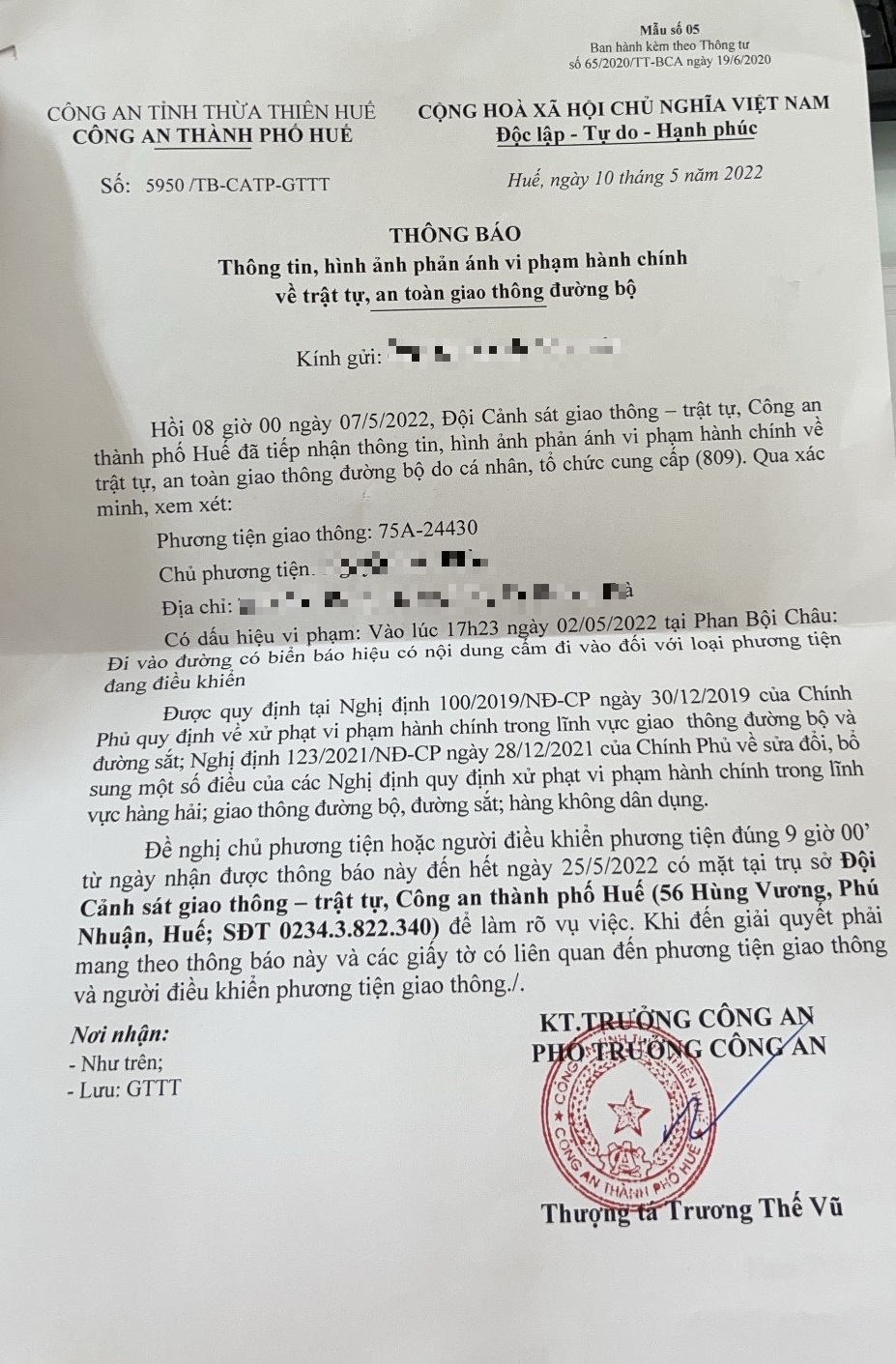Sau khi nhận phản ánh, Công an tỉnh đã chỉ đạo Công an thành phố Huế xác minh, kết quả như sau: