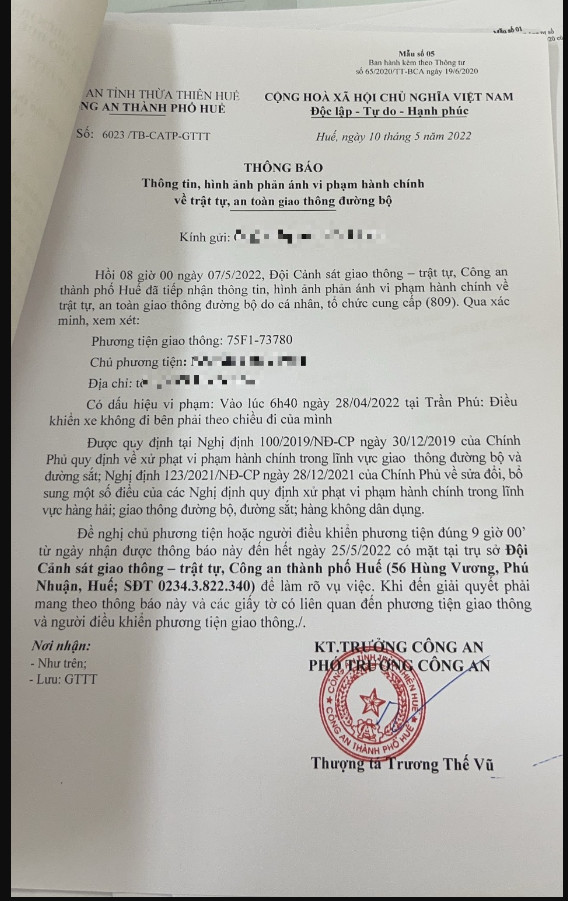 Vấn đề Ông/Bà phản ánh, Công an tỉnh đã chỉ đạo Công an thành phố Huế xác minh và trả lời như sau: