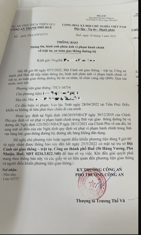 Vấn đề Ông/Bà phản ánh, Công an tỉnh đã chỉ đạo Công an thành phố Huế xác minh và trả lời như sau: