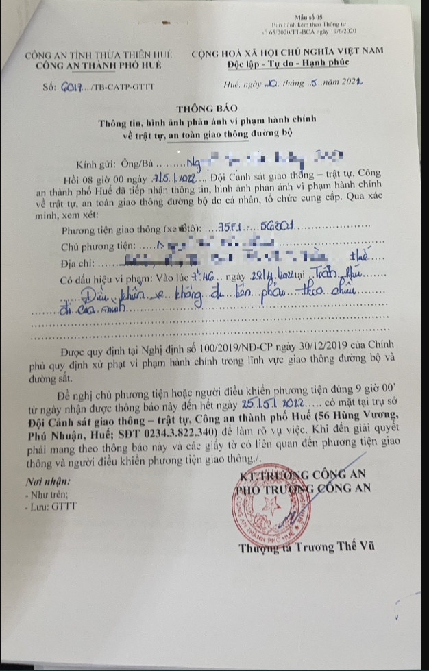 Vấn đề Ông/Bà phản ánh, Công an tỉnh đã chỉ đạo Công an thành phố Huế xác minh và trả lời như sau: