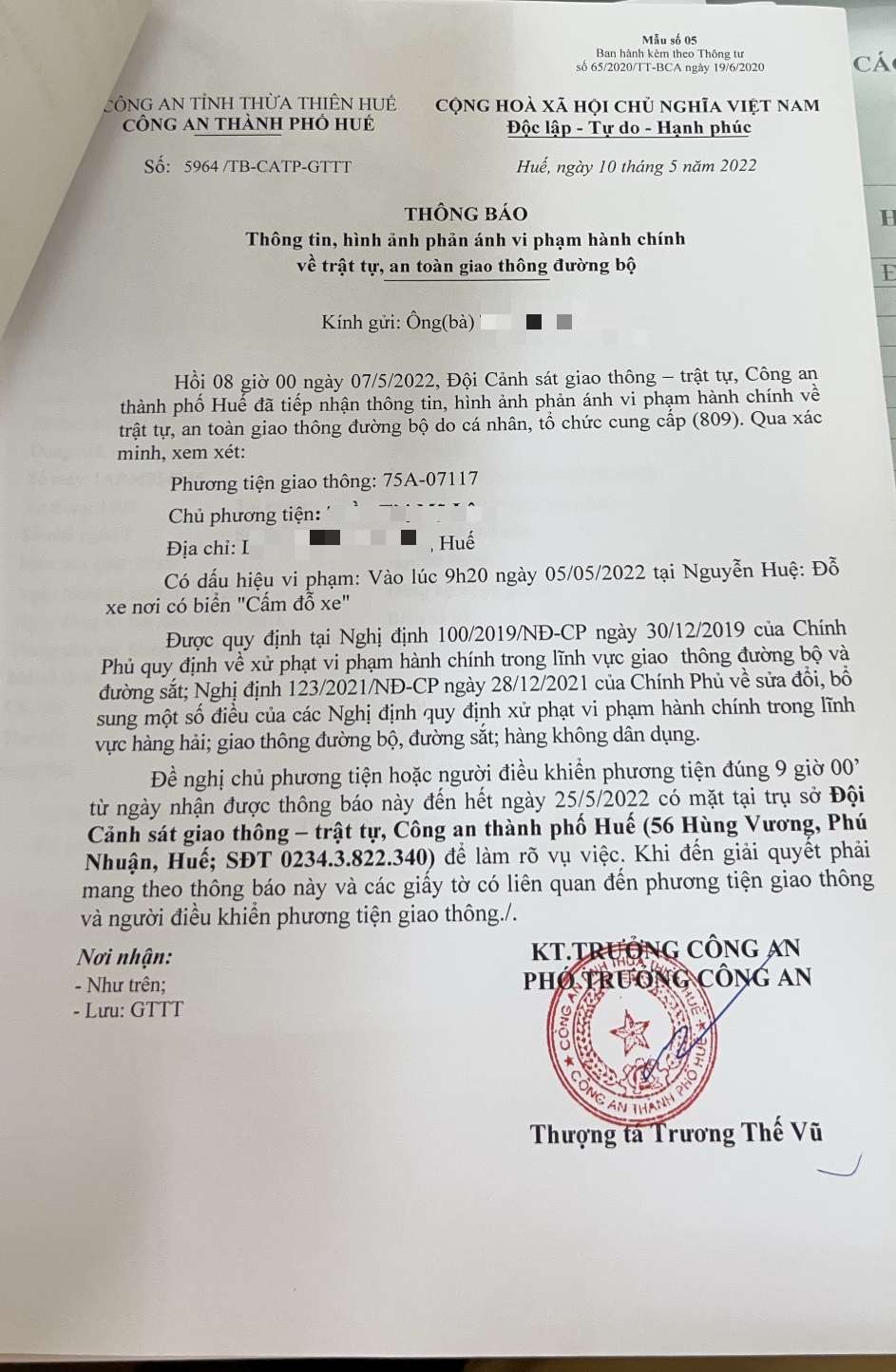 Phòng Cảnh sát giao thông đã tra cứu, thông báo chủ phương tiện đến làm việc vào ngày 05/9/2021. Tuy nhiên, hiện chủ phương tiện vẫn chưa trình diện tại cơ quan. Phòng Cảnh sát giao thông sẽ tiếp tục gửi thông báo đến Công an phường, xã nơi chủ phương tiện thường trú, đồng thời thông báo lực lượng tuần tra kiểm soát trên địa bàn nhằm phát hiện, xử lý.