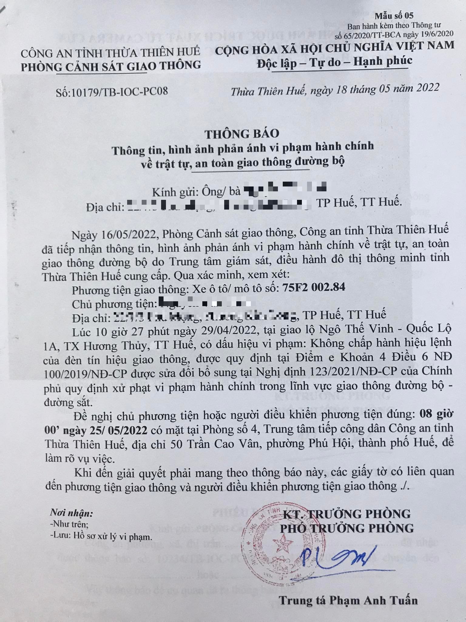 Phòng Cảnh sát giao thông đã gửi thông báo, yêu cầu chủ phương tiện đến làm việc vào ngày 25/5/2022. Tuy nhiên, hiện chủ phương tiện vẫn chưa trình diện tại cơ quan. Phòng Cảnh sát giao thông sẽ tiếp tục thông báo Công an địa phương nơi chủ phương tiện thường trú; đồng thời, thông báo các tổ tuần tra kiểm soát trên địa bàn, trong quá trình làm nhiệm vụ nếu phát hiện sẽ tiến hành dừng xe để xử lý.