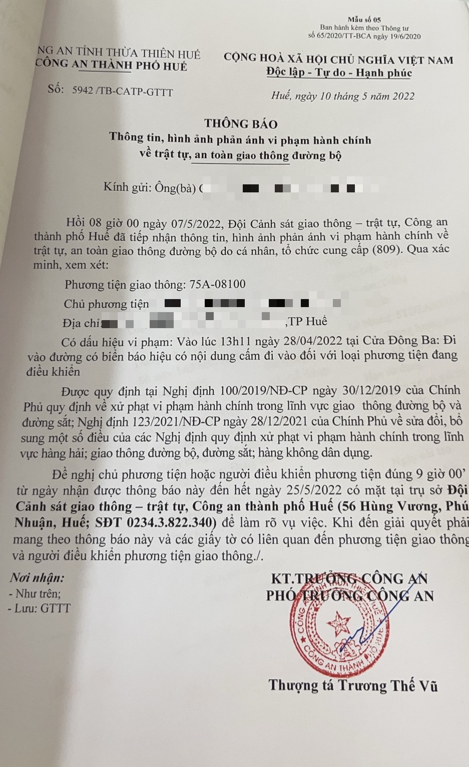 Vấn đề Ông/Bà phản ánh, Công an tỉnh đã chỉ đạo Công an thành phố Huế xác minh và trả lời như sau:
