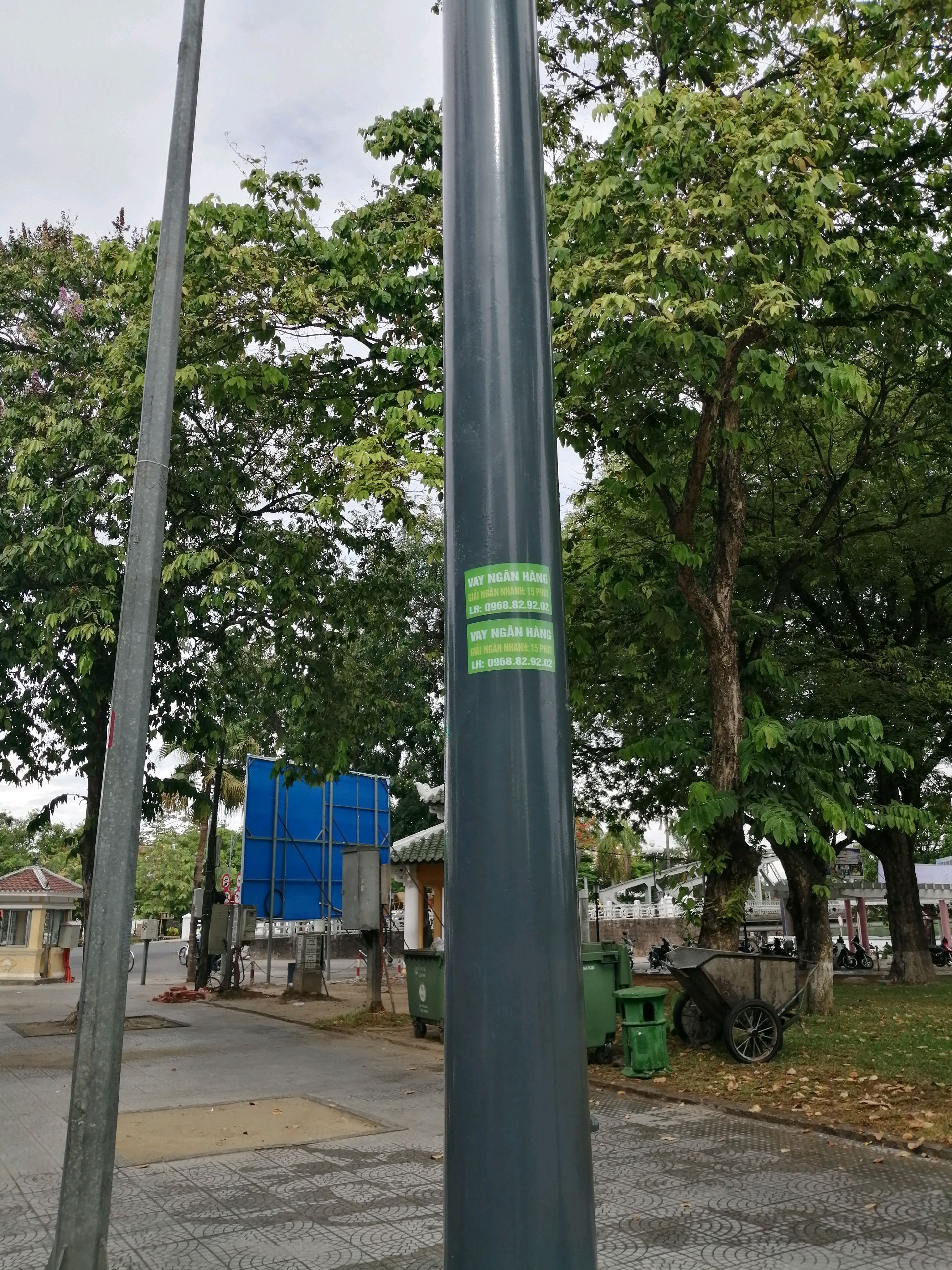Dán quảng cáo ngay trên cột đèn giao thông vừa mới được lắp đặt tại đầu cầu Trường Tiền trục đường Lê Lợi. Rất mong cơ quan có thẩm quyền xử lý.