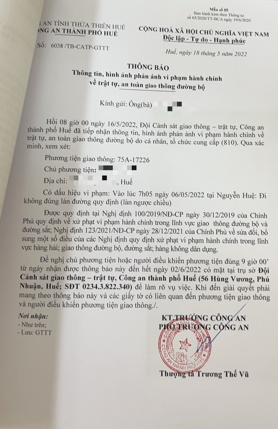 Vấn đề Ông/Bà phản ánh, Công an tỉnh đã chỉ đạo Công an thành phố Huế kiểm tra và trả lời như sau: