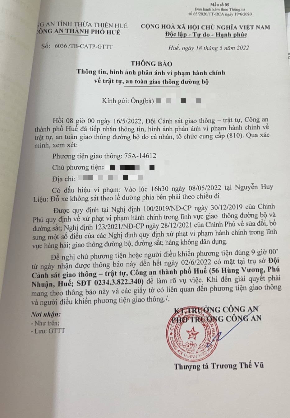 Vấn đề Ông/Bà phản ánh, Công an tỉnh đã chỉ đạo Công an thành phố Huế kiểm tra và trả lời như sau: