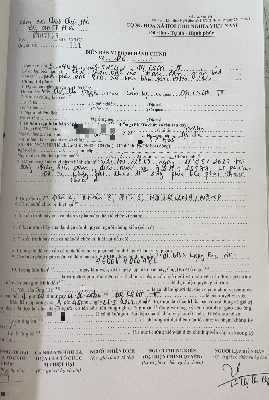Công an thành phố đã lập biên bản vi phạm hành chính đối với chủ phương tiện về lỗi trên, dự kiến phạt tiền 900.000đ. (Quyết định xử phạt sẽ được cập nhật sau khi hoàn tất thủ tục).